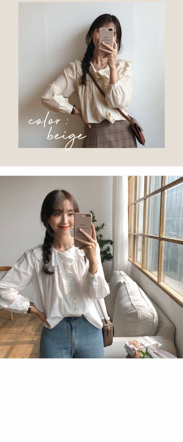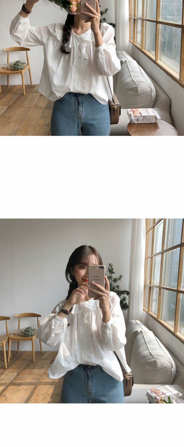 スプリング韓国ファッショントレンドイヤリング カラーシャツ ルーズ薄手スリーブレディーストップス 春物 指輪 MONROE6567189