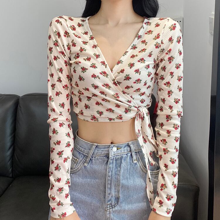 ショートレディース夏服ワンピースバンドVネックスリムゆったりシャツ フローラルTシャツ ロング 夏物 花柄 長袖 ワンナンバー4668659