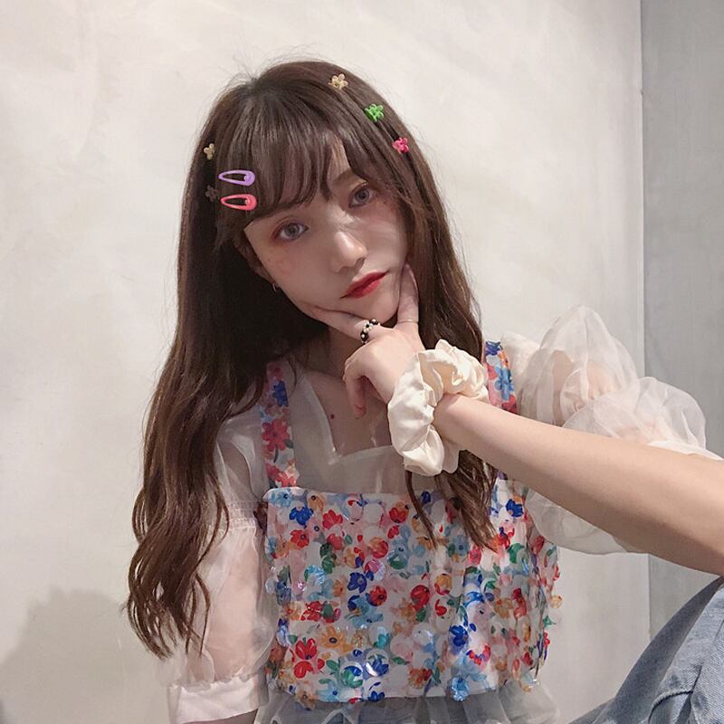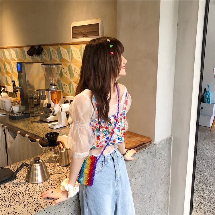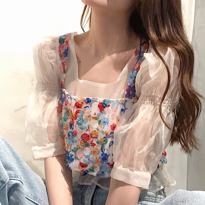 色:カラースパンコールベスト,ガーゼパフスリーブシャツ