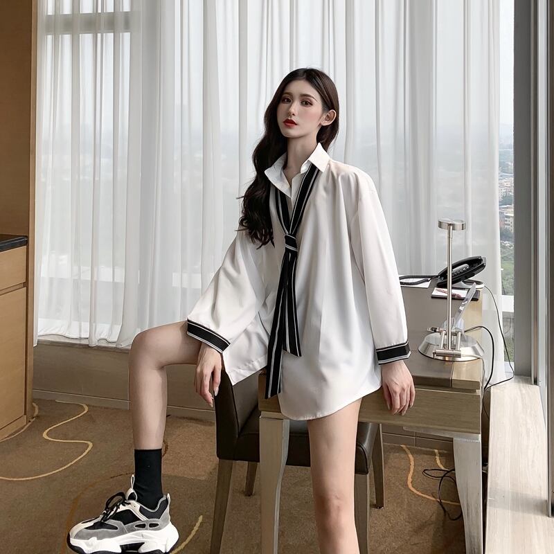 スタイルシャツ レディーススタンダードルーズスリーブシフォンスリムソリッド カラー夏服 レトロ 夏物 ソリッドカラー ミドル丈 YY1247262
