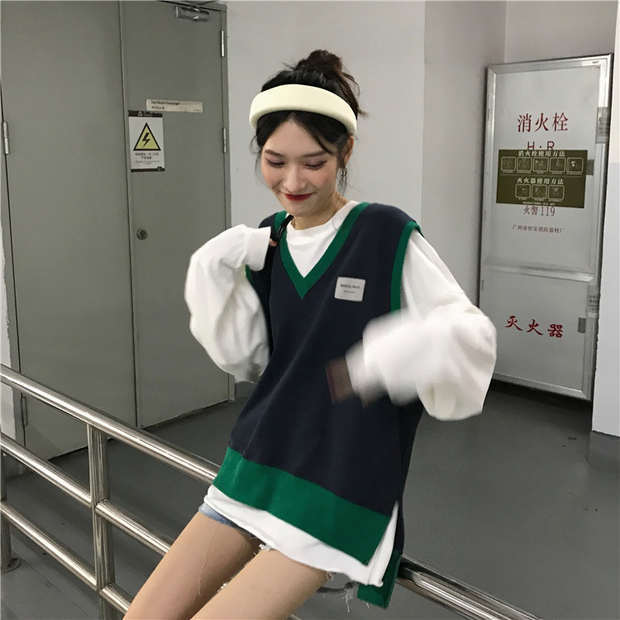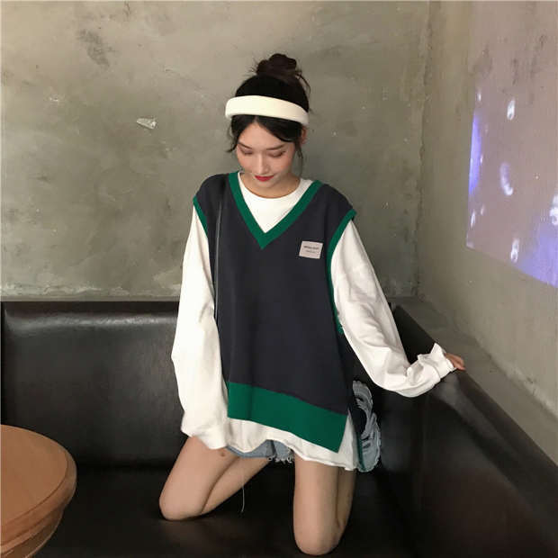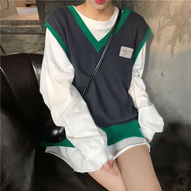 秋物レディースカラースタンダード韓国ファッションスタイルVネックプルオーバー トップス レトロ オータム MONROE7000308