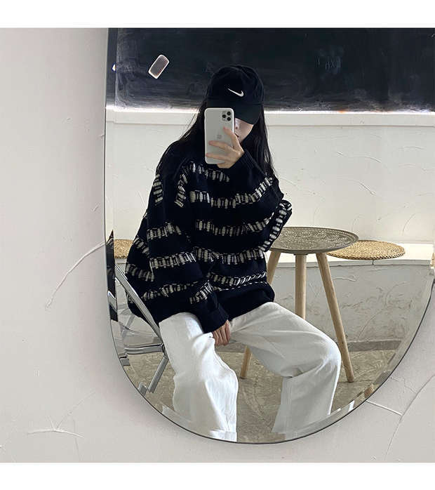 スタンダードトレンドセーター 秋物韓国ファッションルーズプルオーバー トップス ロング レトロ オータム 長袖 MONROE60560337851