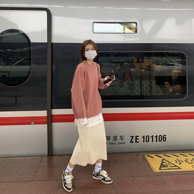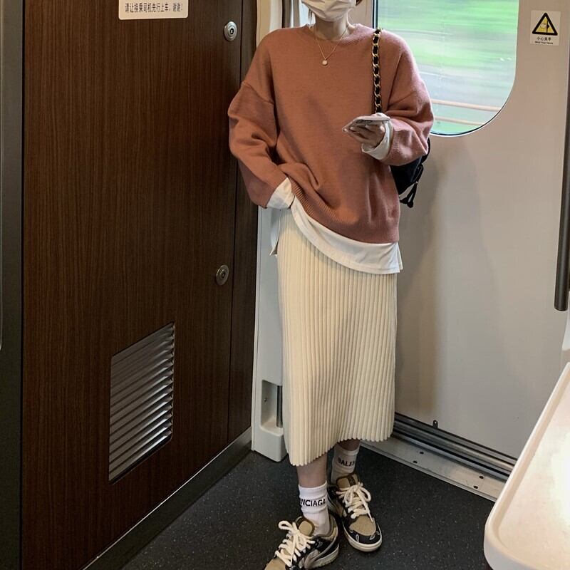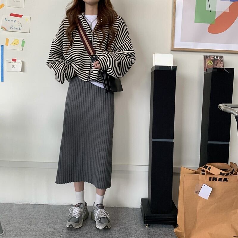 秋物ウィンターストライプハイウェストウェストニットスカート オータム 冬物 ウエスト ミドル丈 MONROE57474136620