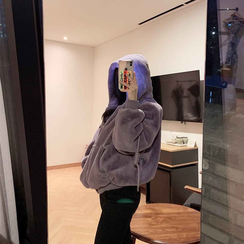 韓国ファッションルーズショートフードジャケット 秋物ウィンタートップス オータム 冬物 スタイル MONROE77482267414