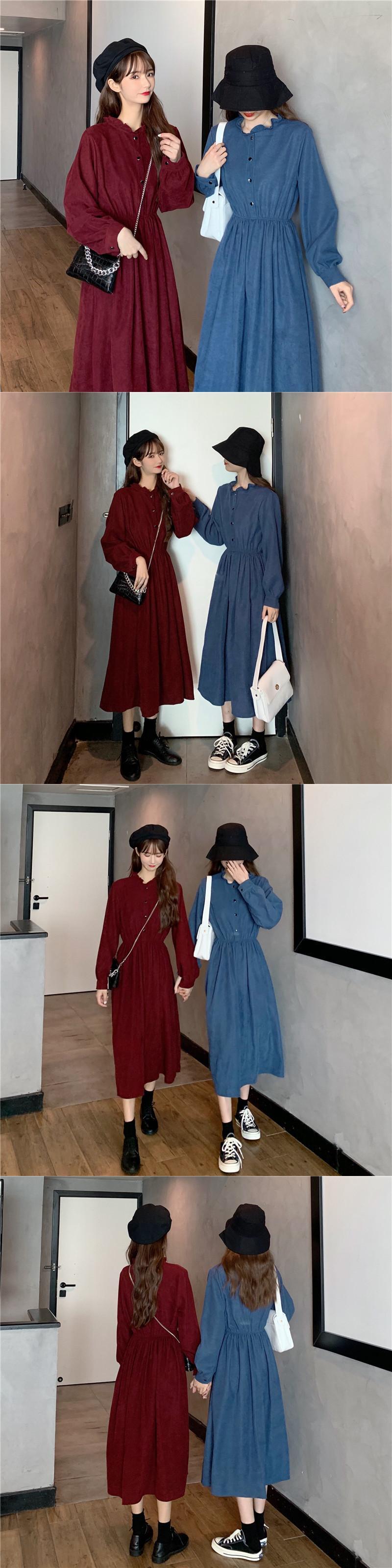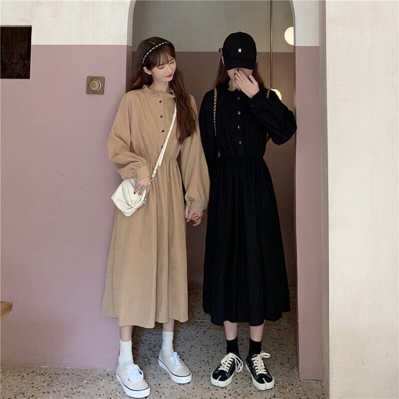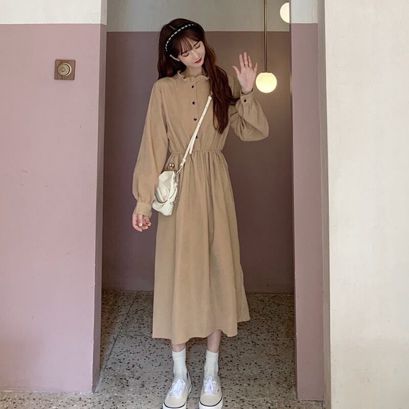 秋物韓国ファッションスタンダードスカート スタイルワンピースレディース ロング レトロ オータム 長袖 ミドル丈 SYJ54314286284