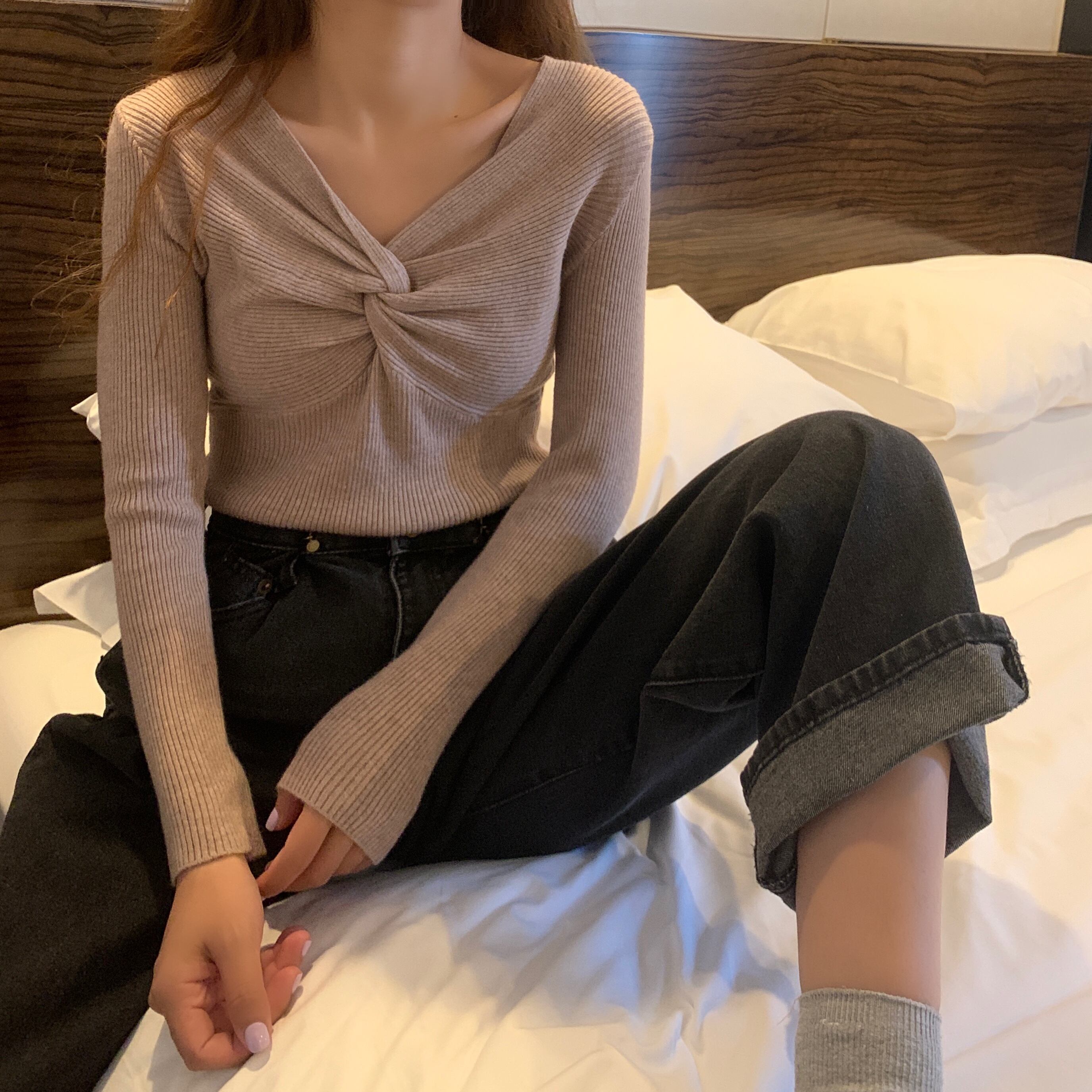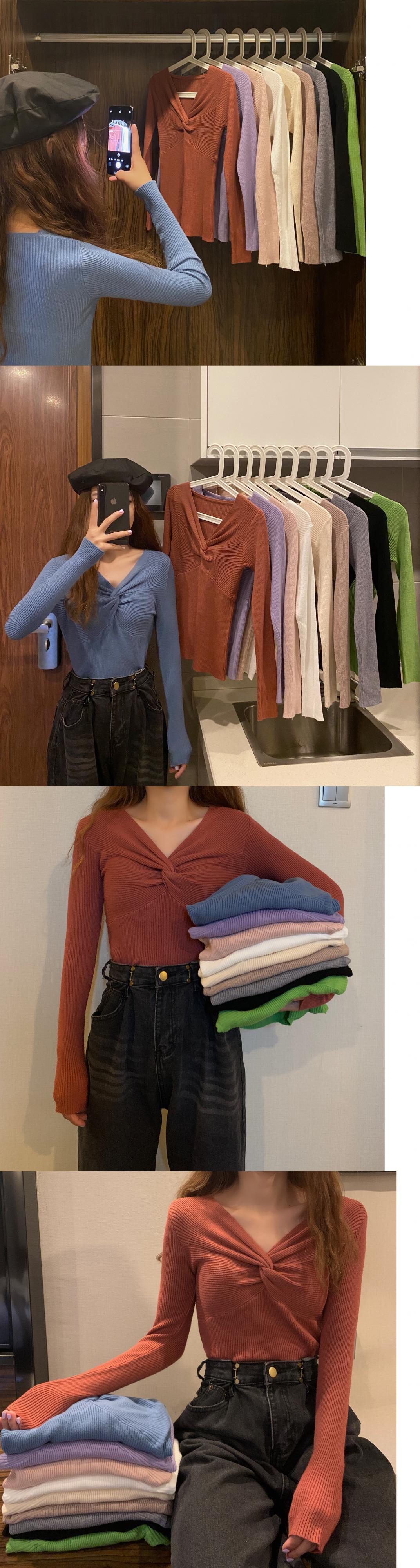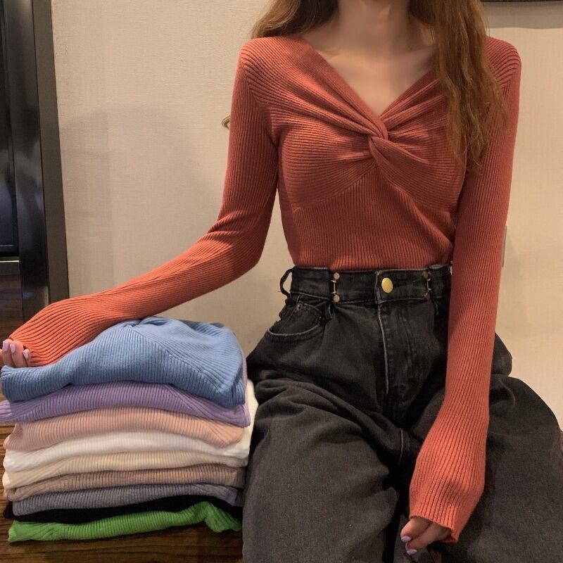 セーター Vネックニットゆったりシャツ 秋物ウィンタートップス ロング オータム 冬物 長袖 ワンナンバー45853861497