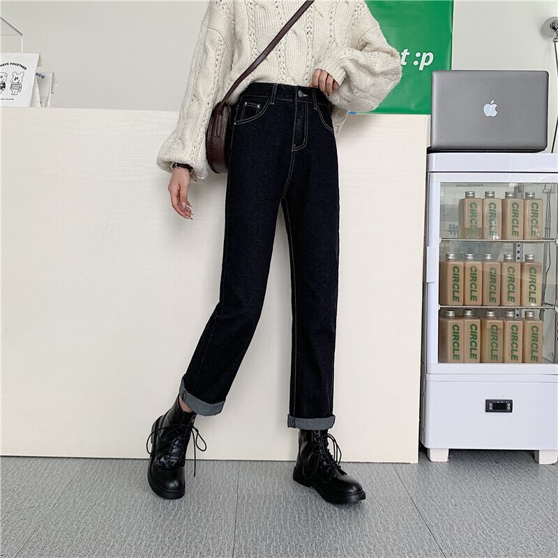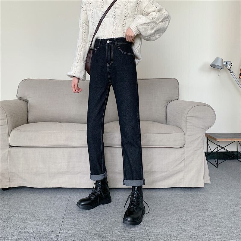 ハイウェスト秋物ウィンターダークジーンズ レディース オータム 冬物 ウエスト SYJ51848919025