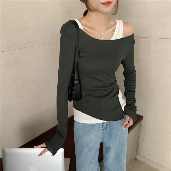 レディーススプリングスリムTシャツ ロング 春物 長袖 ワンナンバー50085206210