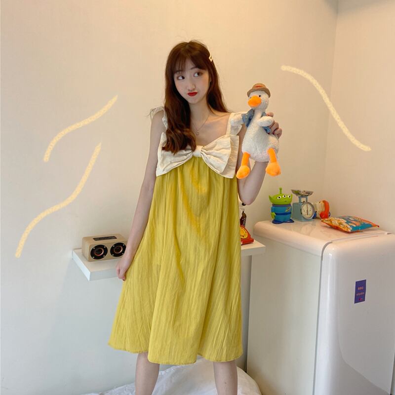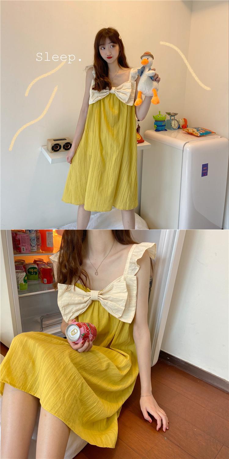 パジャマレディースリボンルーズ ルームウェア 大人ガーリー スウィートノースリーブ キュート 韓国ファッションカジュアル 春夏物 SYJ89835362418