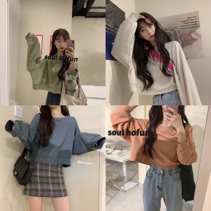 秋物ルーズ韓国ファッションスタイル薄手ラウンドネックセーター ショートトップス トレンド ロング オータム Oネック ボーイズ 長袖 YY2860980201