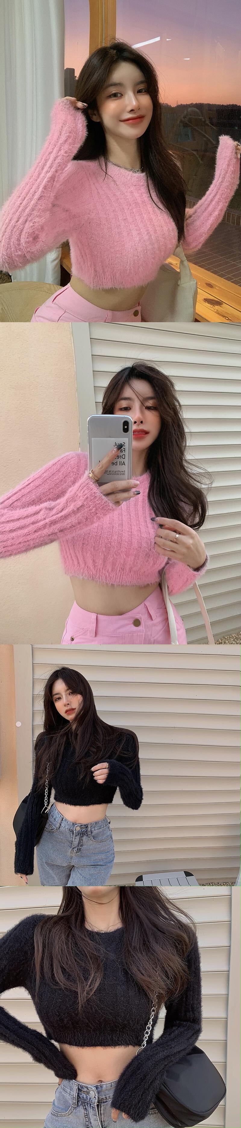 ラウンドネックホワイトショートセーター スプリング秋物トップス ロング 春物 オータム Oネック 長袖 YY22718612858