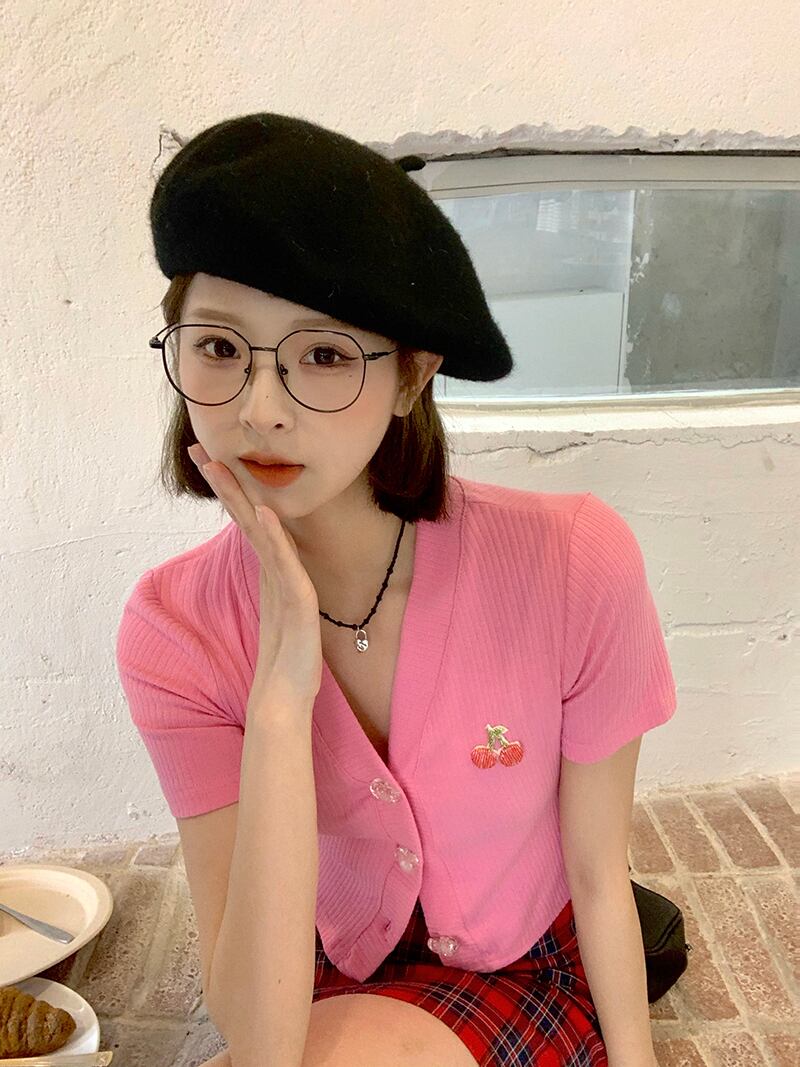 Vネックセーター スプリングカーディガンコート 韓国ファッションクロップドトップス 春物 MONROE18576335025