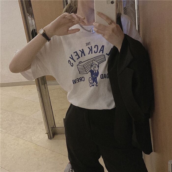 トレンドホワイトTシャツシャツ 夏服ルーズ韓国ファッションカジュアルゆったりトップス 夏物 MONROE3331498273
