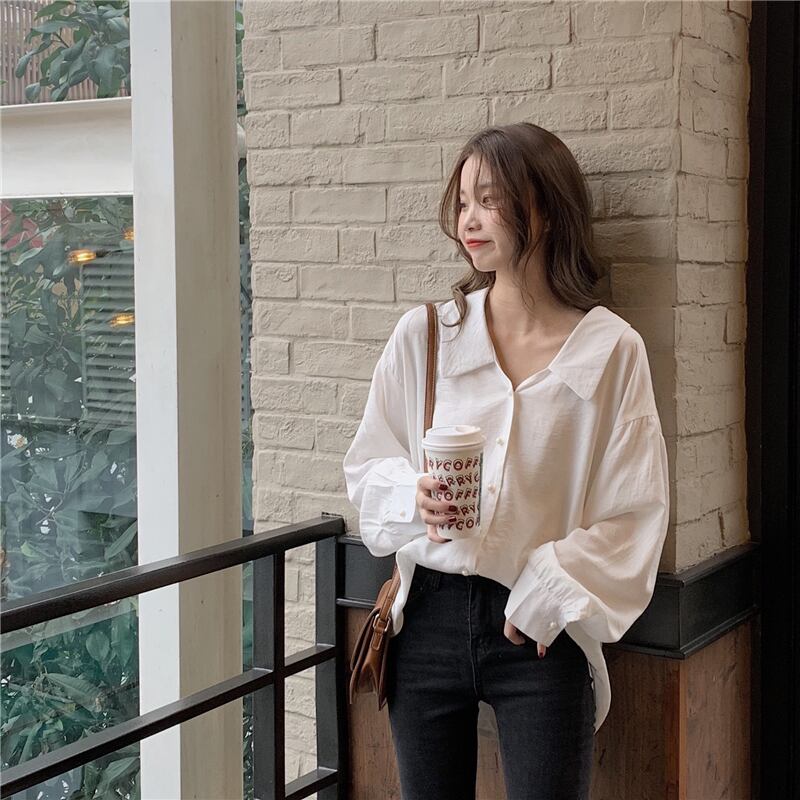 ホワイトシャツ スプリングルーズトップス ロング 春物 長袖 YY33750768476