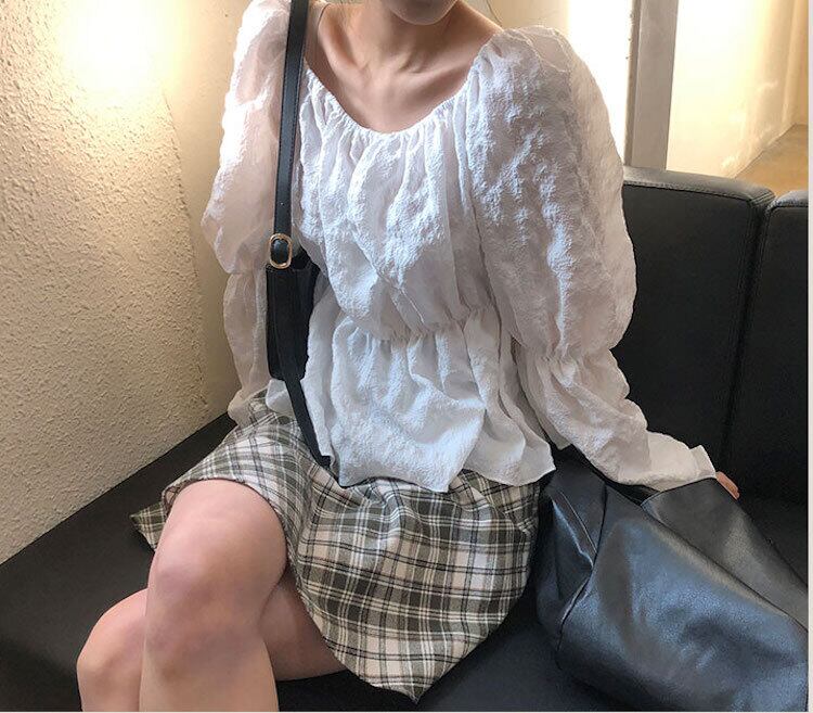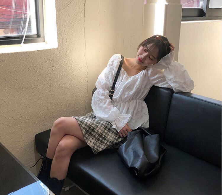 色:チェック柄スカート,シャツ