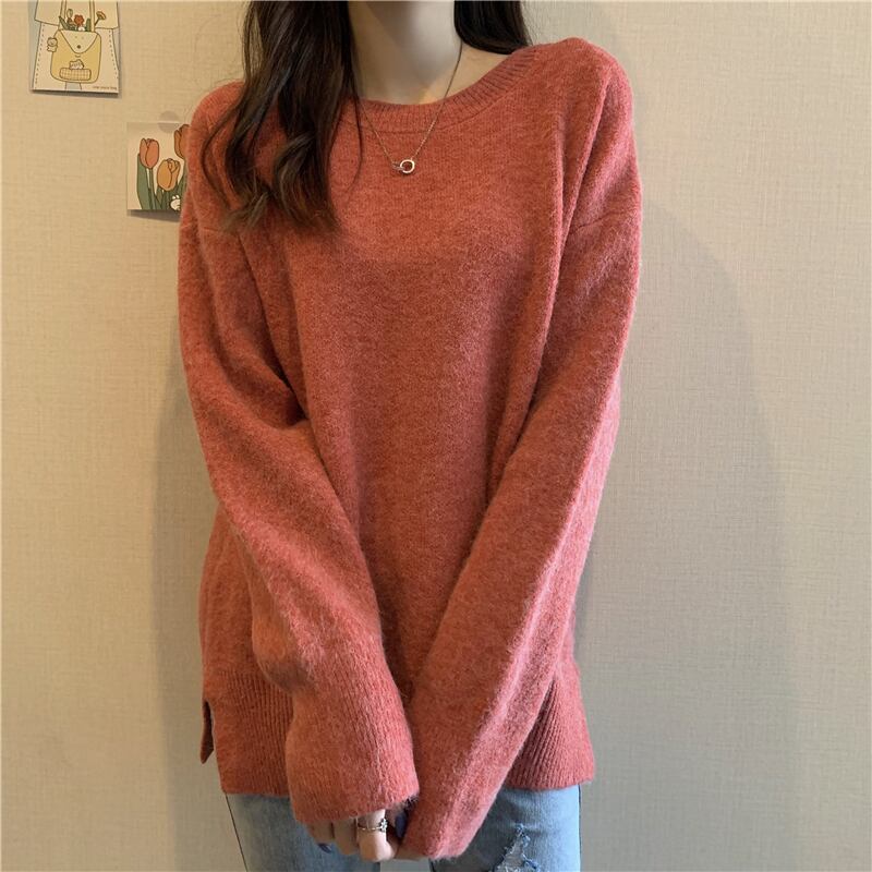 ラウンドネックプルオーバー ホワイトセーター レディーススタイル韓国ファッションルーズニットトップス オータム 秋物 ウィンター 冬物 Oネック YY92504990653