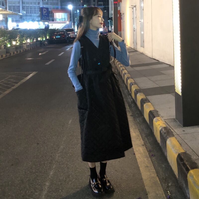 ワンピースレディースウィンターブラックスカート 秋物 オータム 冬物 ミドル丈 YY7079753752