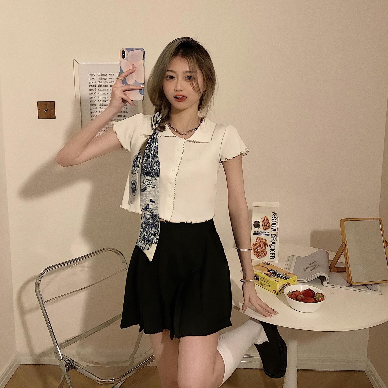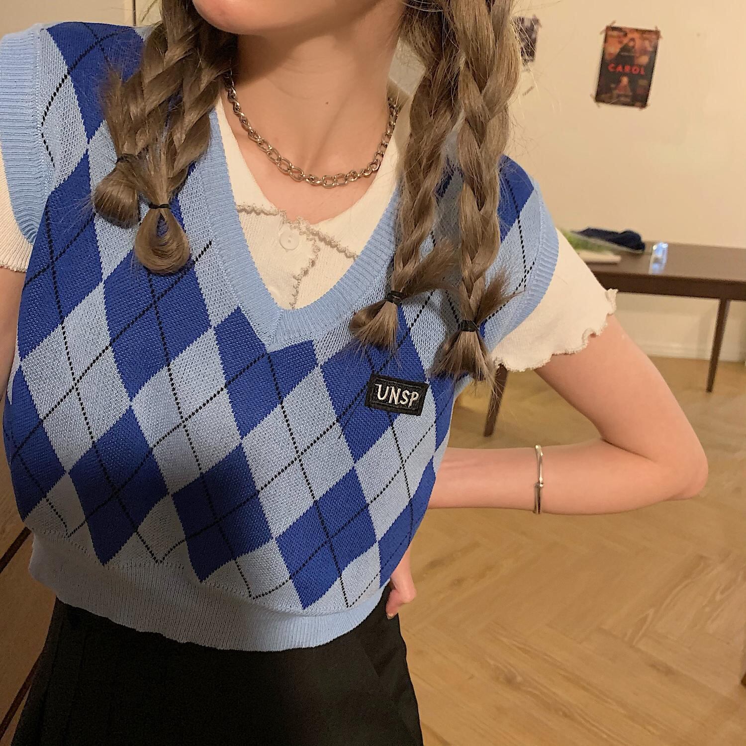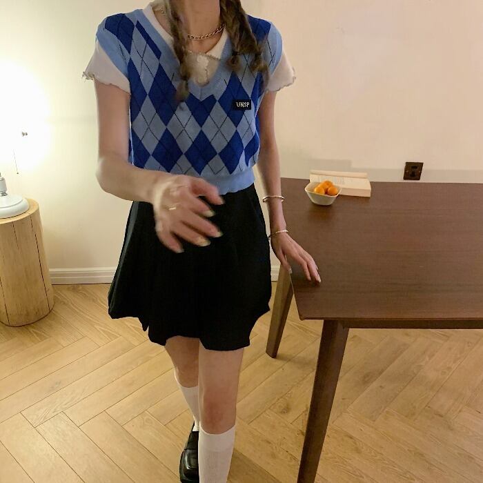 色:ホワイトポロプライマー,ブルーのショートチョッキ