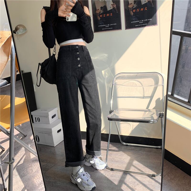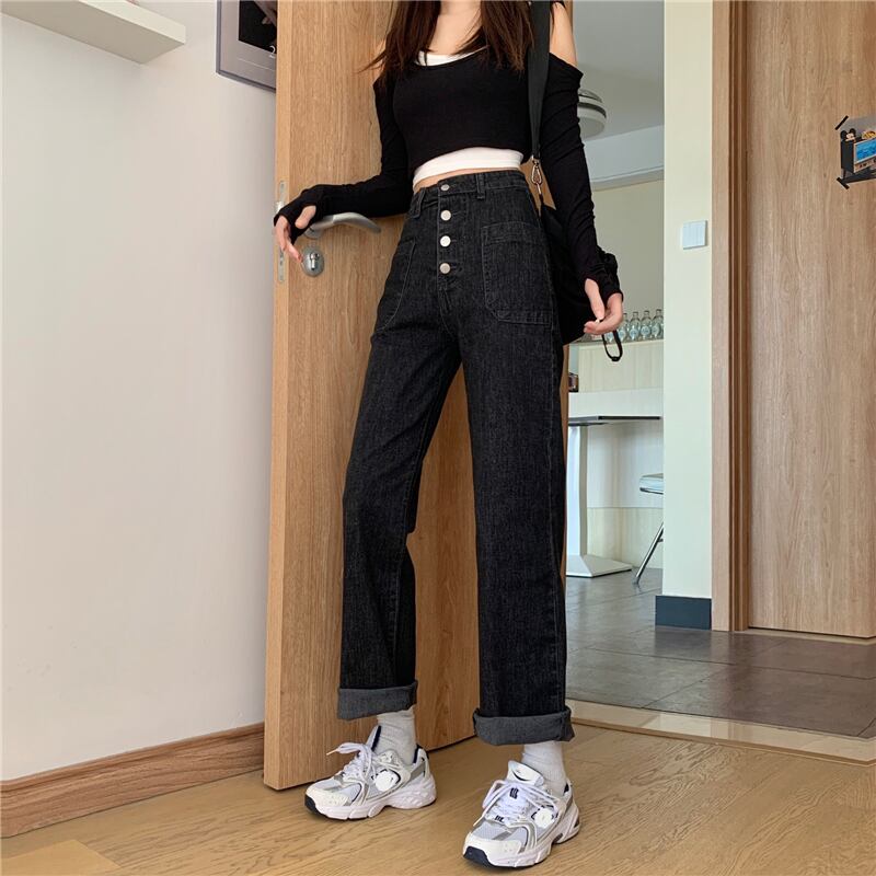 パンツ スプリング秋物韓国ファッションハイウェストウェストジーンズ ルーズ薄手 春物 オータム スタイル ウエスト SYJ49436186014