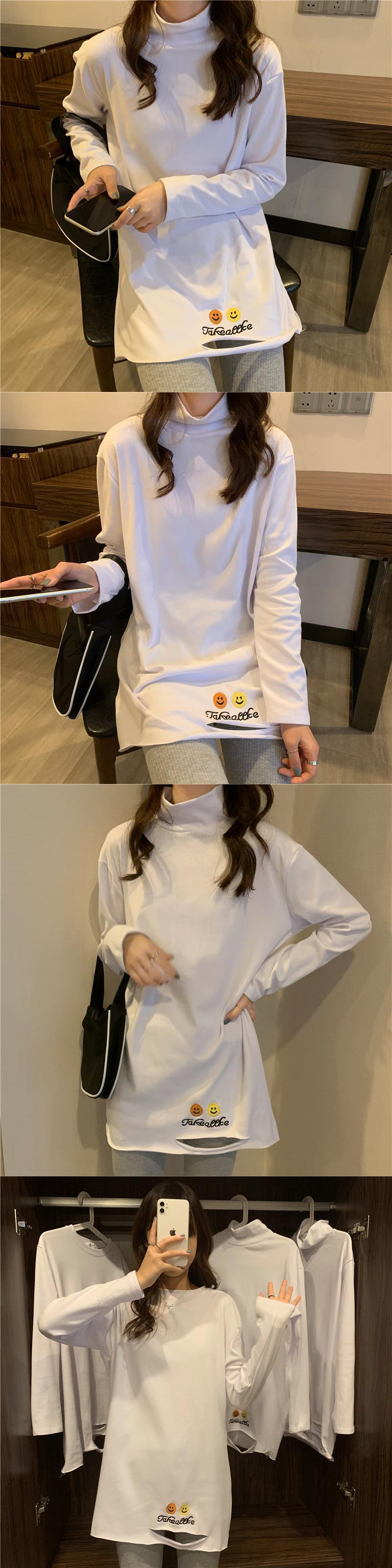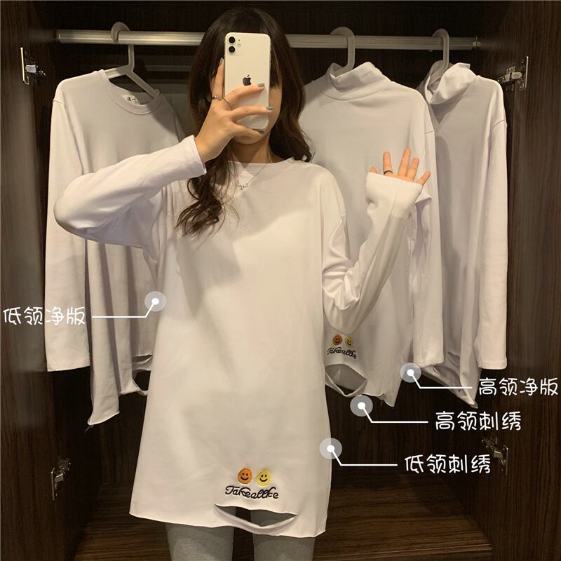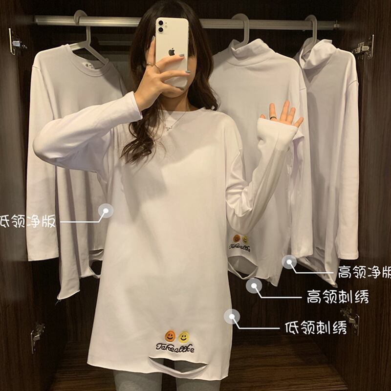 刺繍ロングTシャツシャツ ホワイトゆったり オータム 秋物 ウィンター 冬物 長袖 YY48315479781