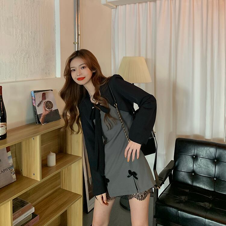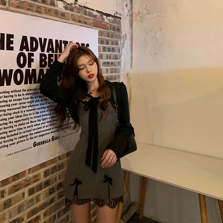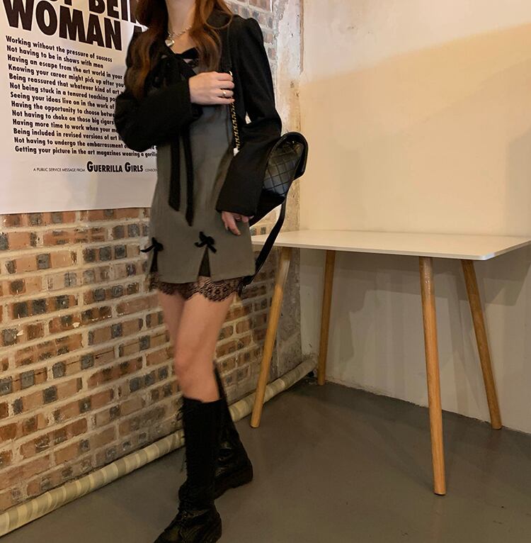 秋物ウィンターリボンレースワンピースショールショートジャケット レディース オータム 冬物 ステッチ YY52141158180