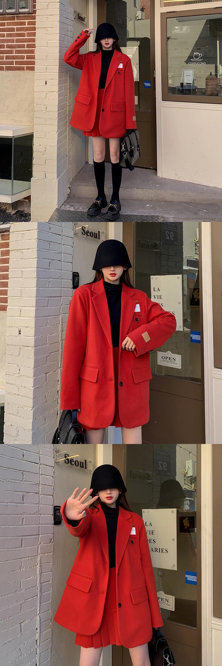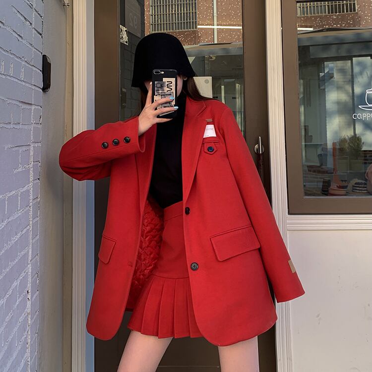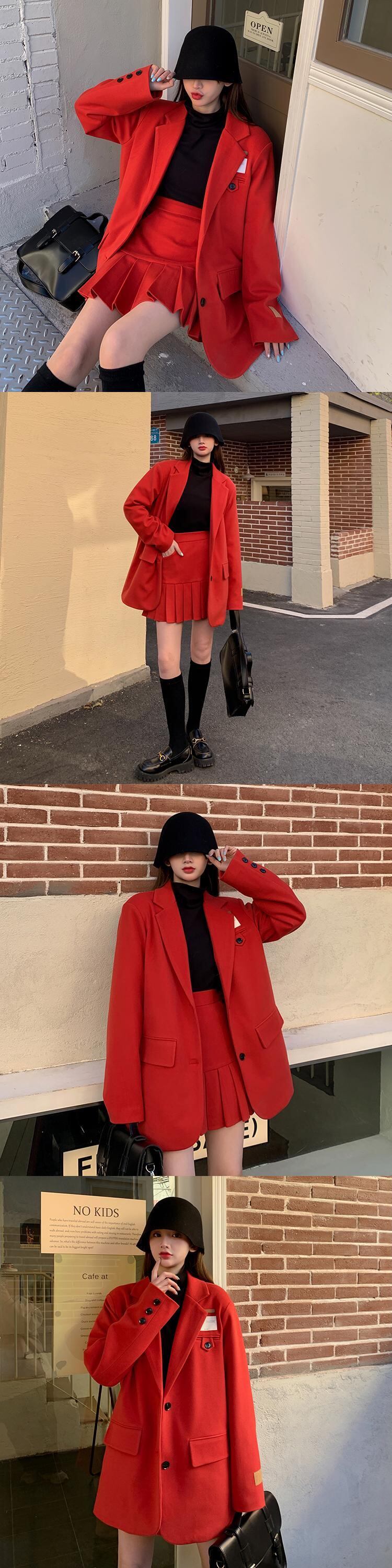 色:黒いジャケット,黒スカート,赤いジャケット,赤いスカート