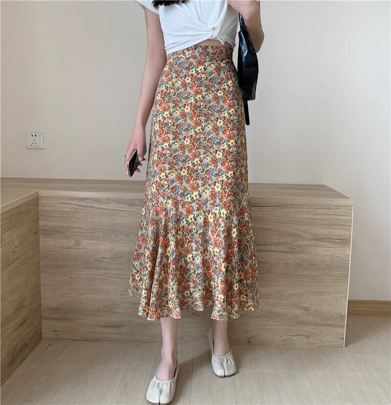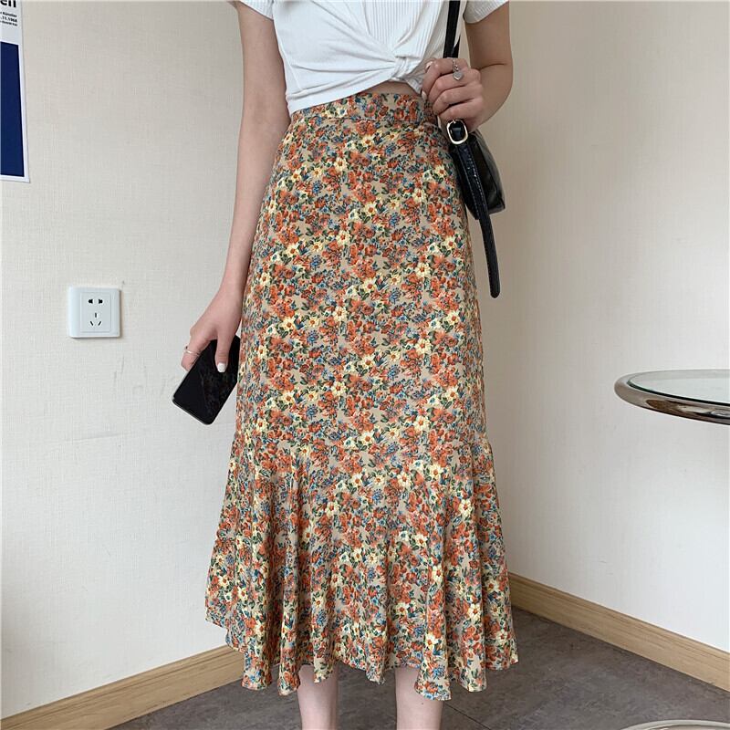 スタンダードフローラルAラインスカート レディーススプリング秋物ハイウェストウェスト レトロ 春物 オータム 花柄 ウエスト ミドル丈 ワンナンバー58338368351