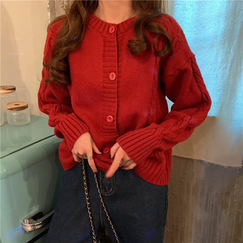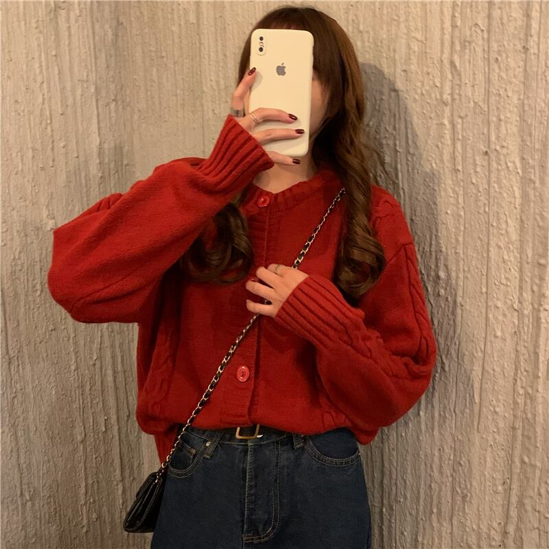 セーター カーディガンジャケット スタンダードルーズニット ウィンターレッドトップス レトロ 冬物 YY68616925416