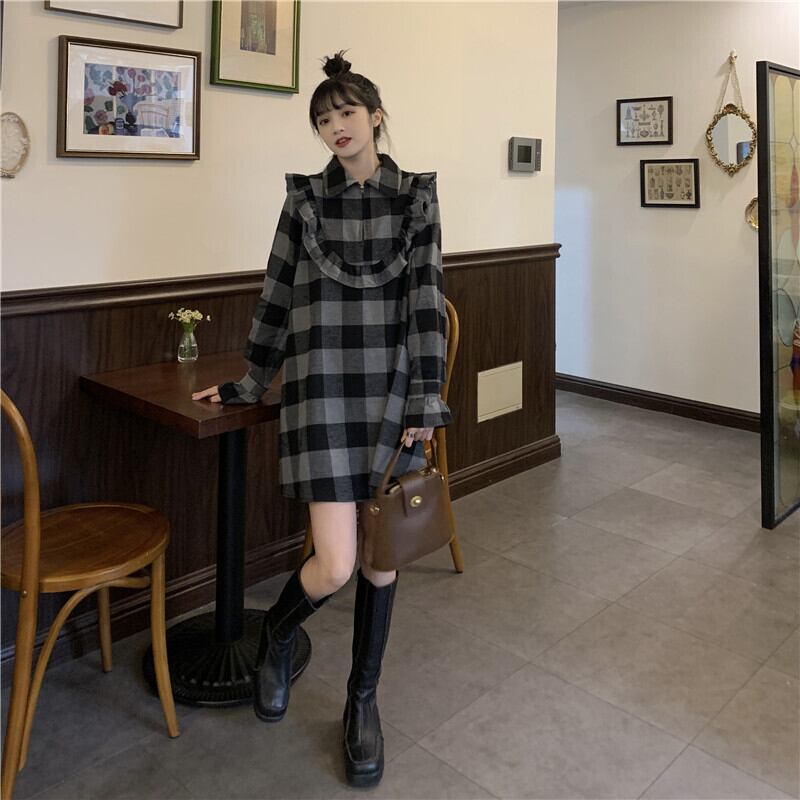 ワンピーススプリングスタンダード ロング レトロ 春物 長袖 ワンナンバー53656452765