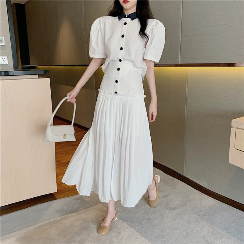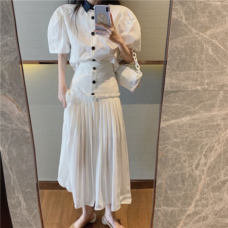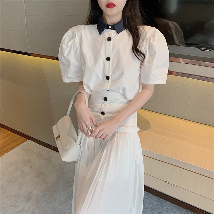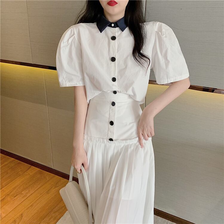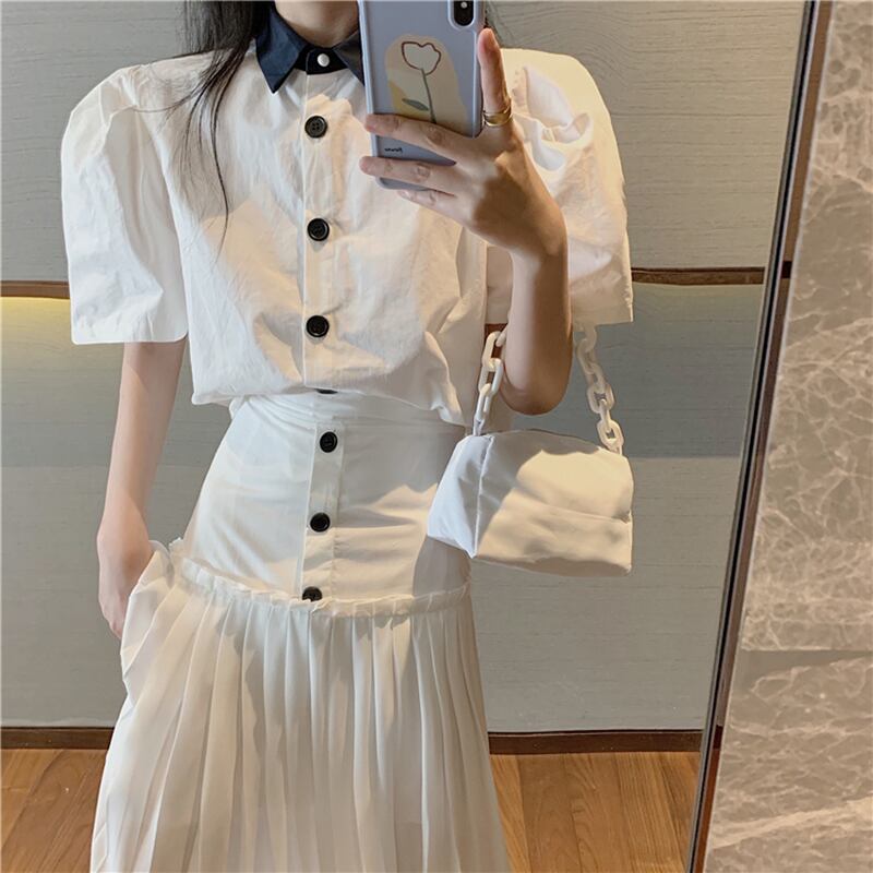 スタイルレディーススタンダードスプリング秋物シャツ トップス ハイウェストウェストスカート レトロ 春物 オータム ウエスト ワンナンバー42247476114
