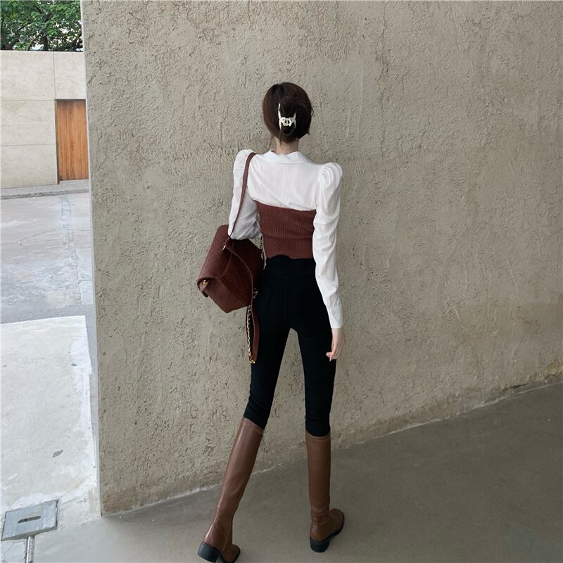 色:ライトコーヒートップ,ブラックトップ,黒のペンシルパンツ