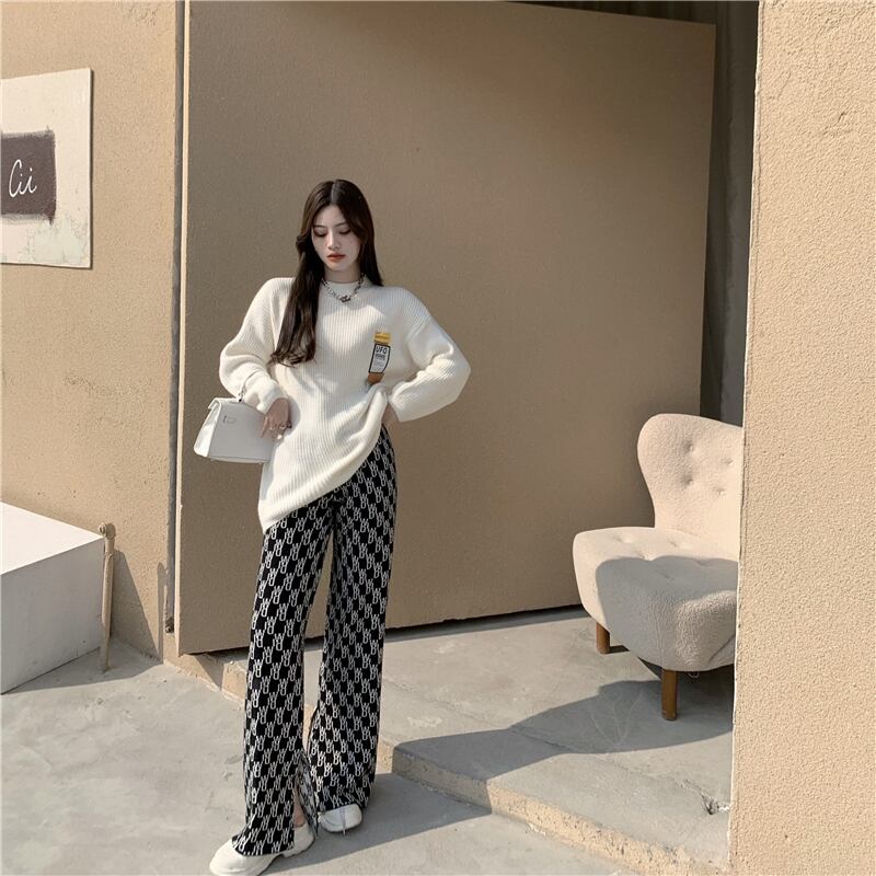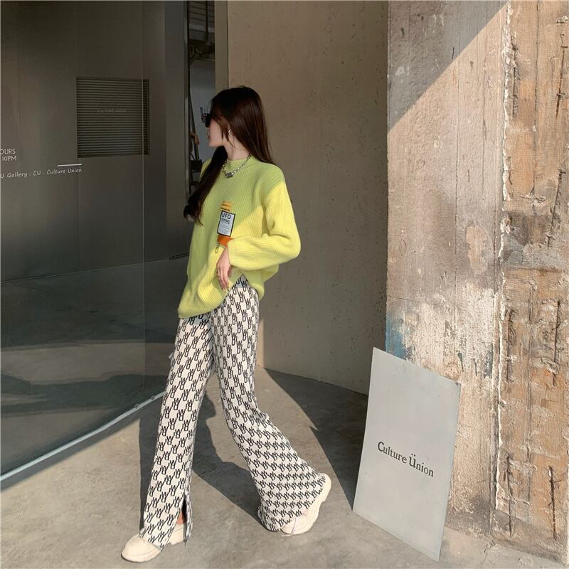秋物ウィンター韓国ファッションルーズプルオーバー ハイウェストパターンパンツ レディース レッド オータム 冬物 ウエスト YY86117143895