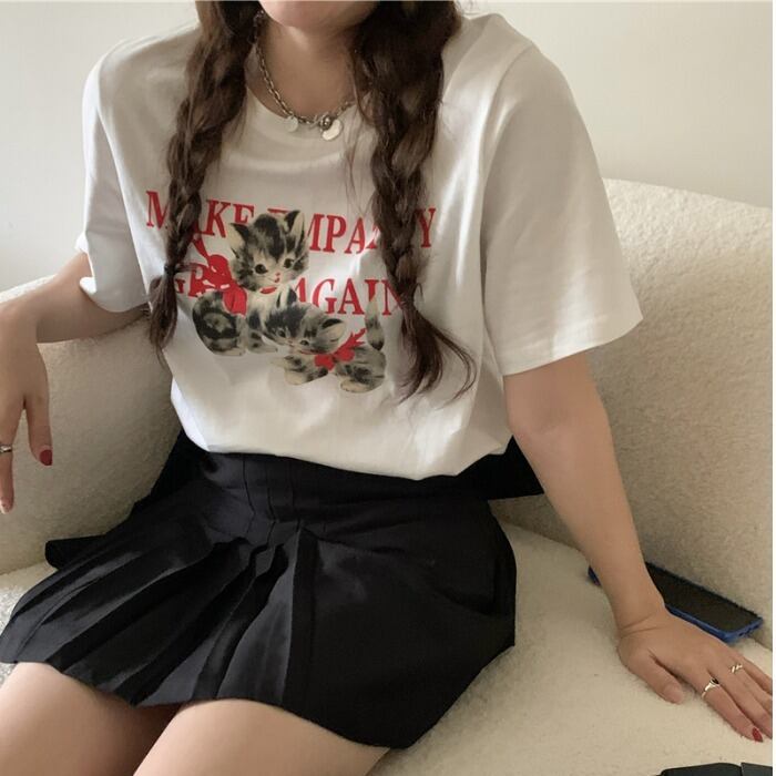 韓国ファッションTシャツレディースホワイトルーズ夏服カジュアルブラウス トレンド コットン 夏物 ピュア スタイル MONROE66567560379