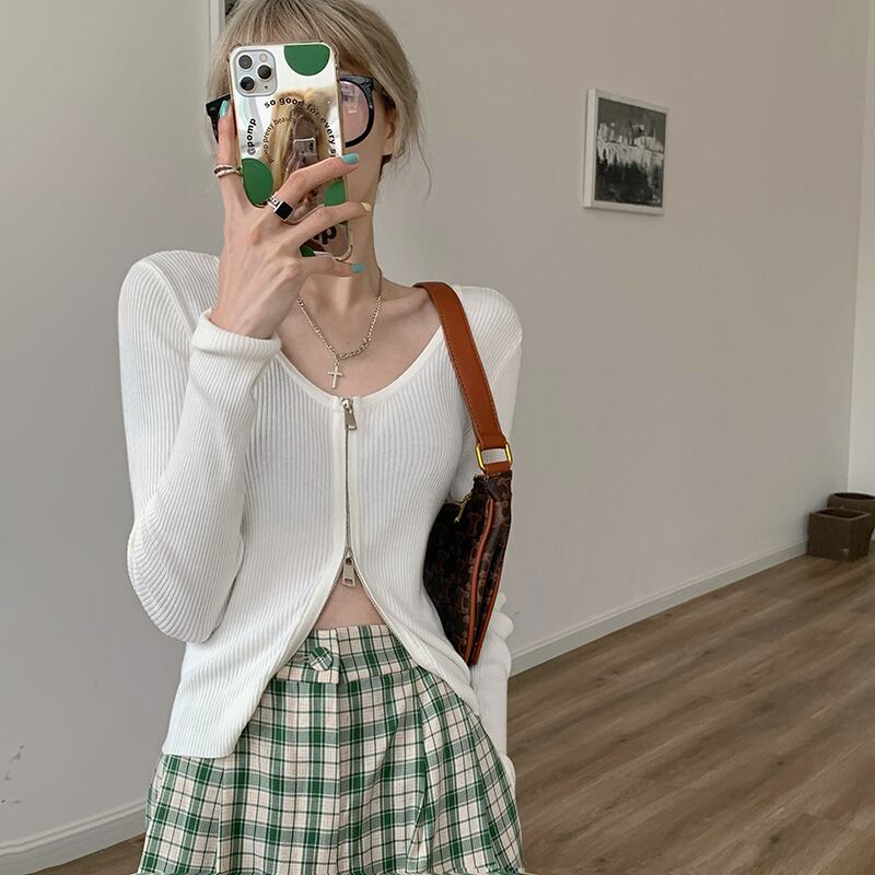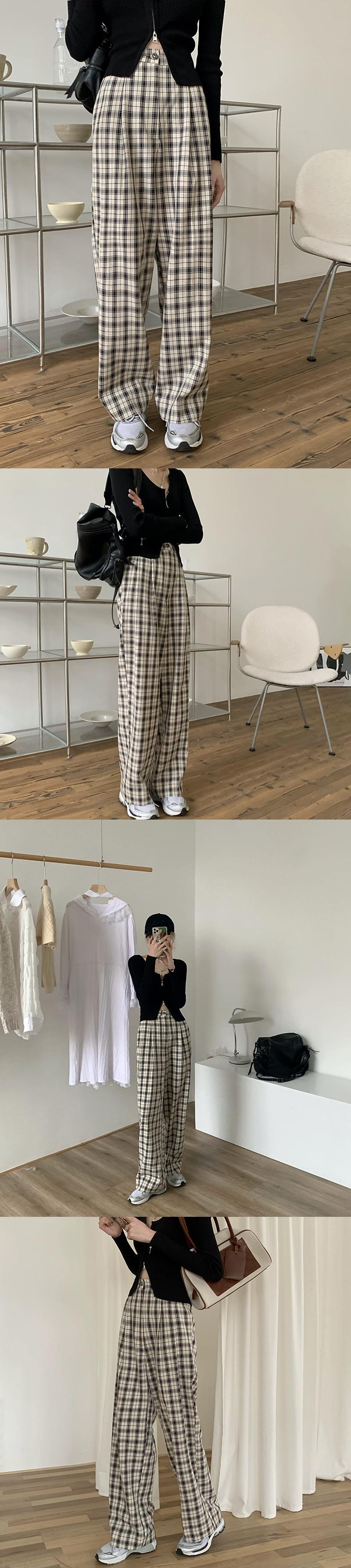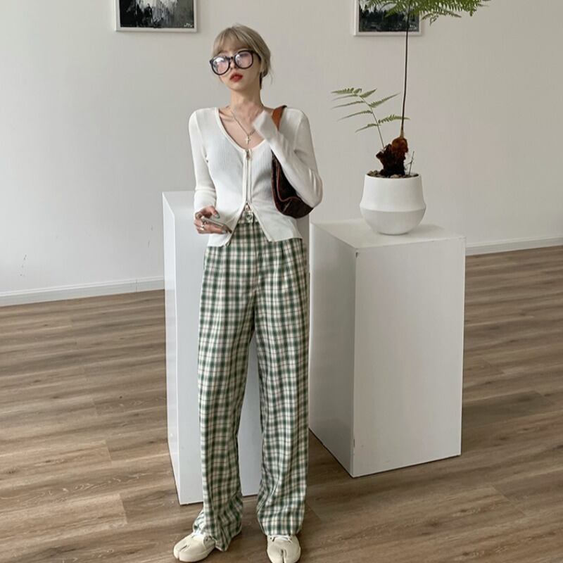 色:83061ホワイトニット長袖,83061黒ニット長袖,63826ブラックチェック柄パンツ,63826グリーンチェック柄パンツ