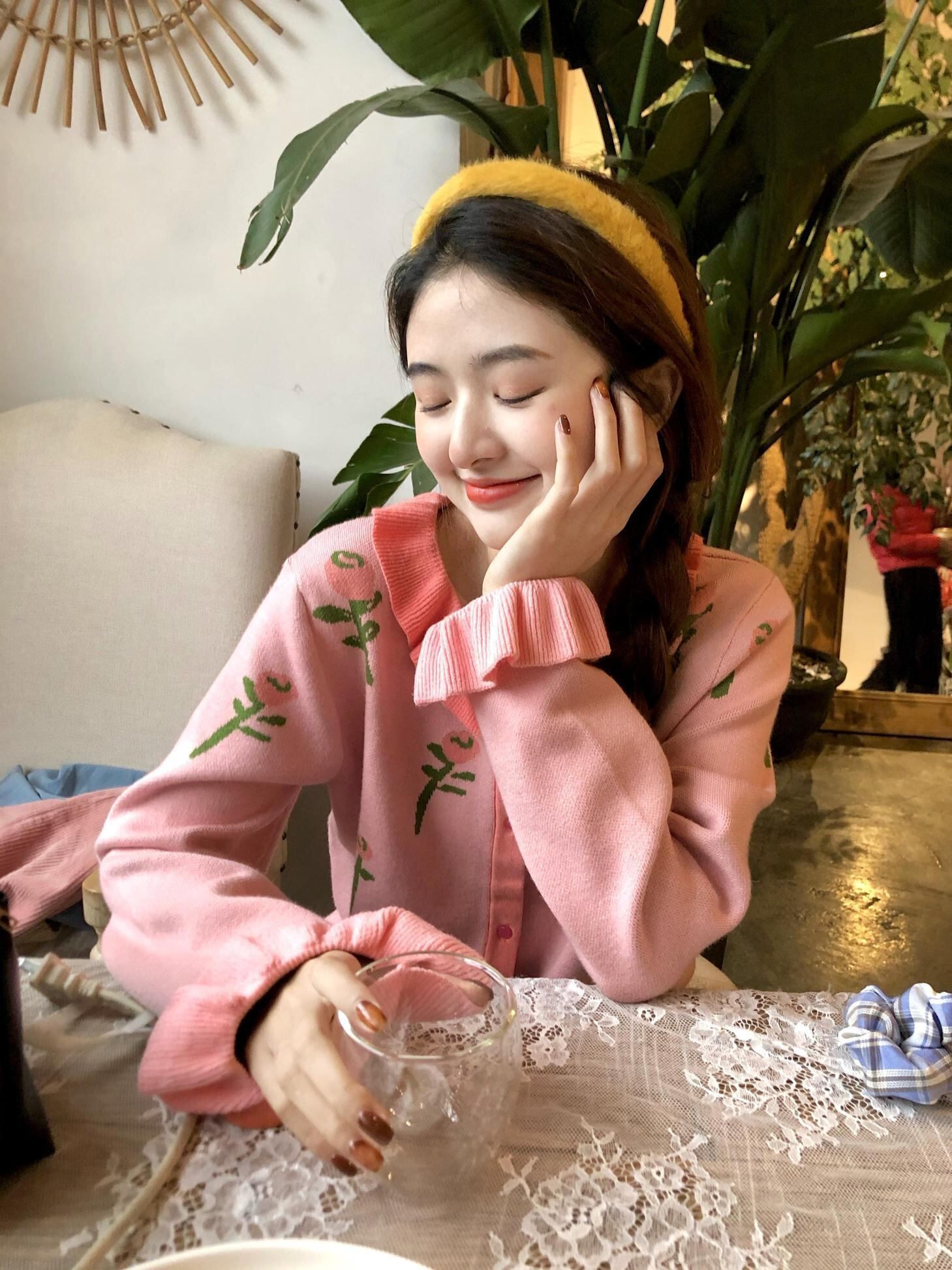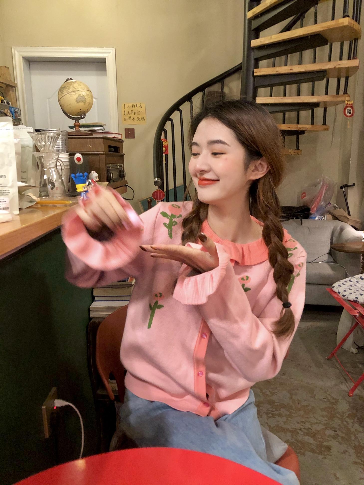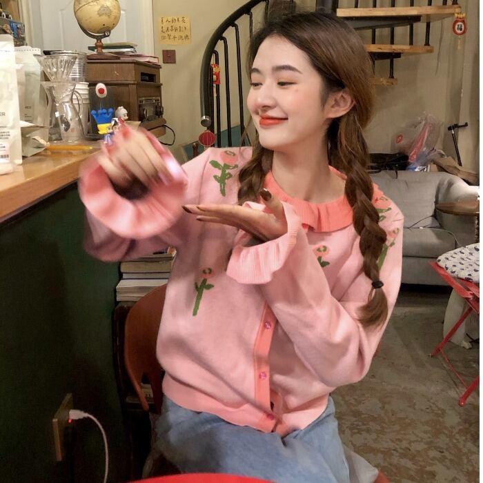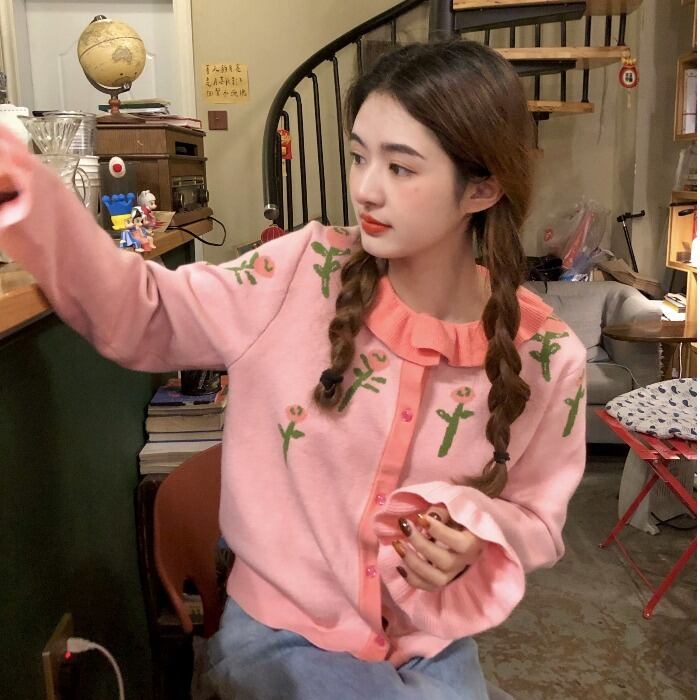 色:ピンクフラワーカーディガン