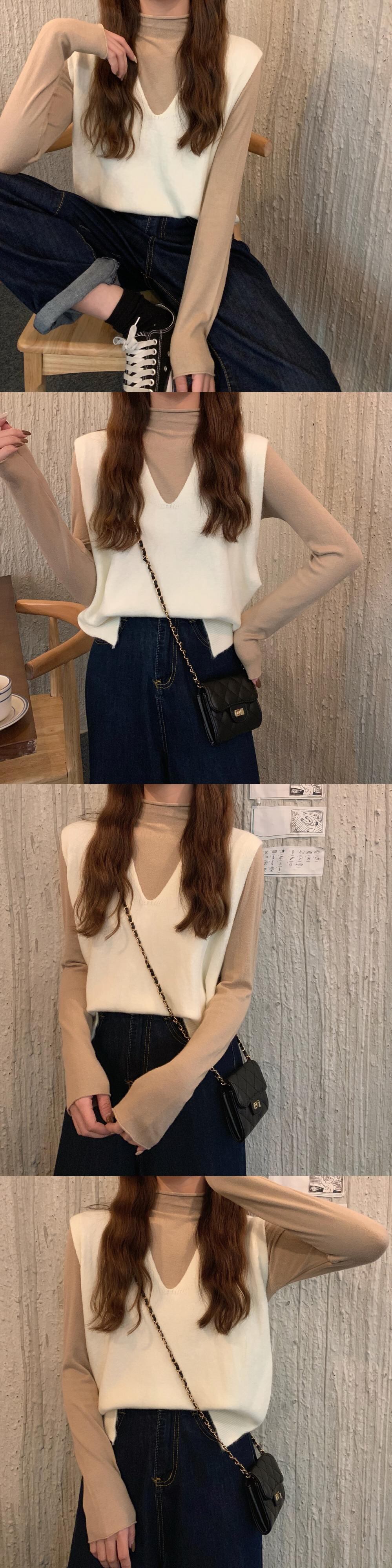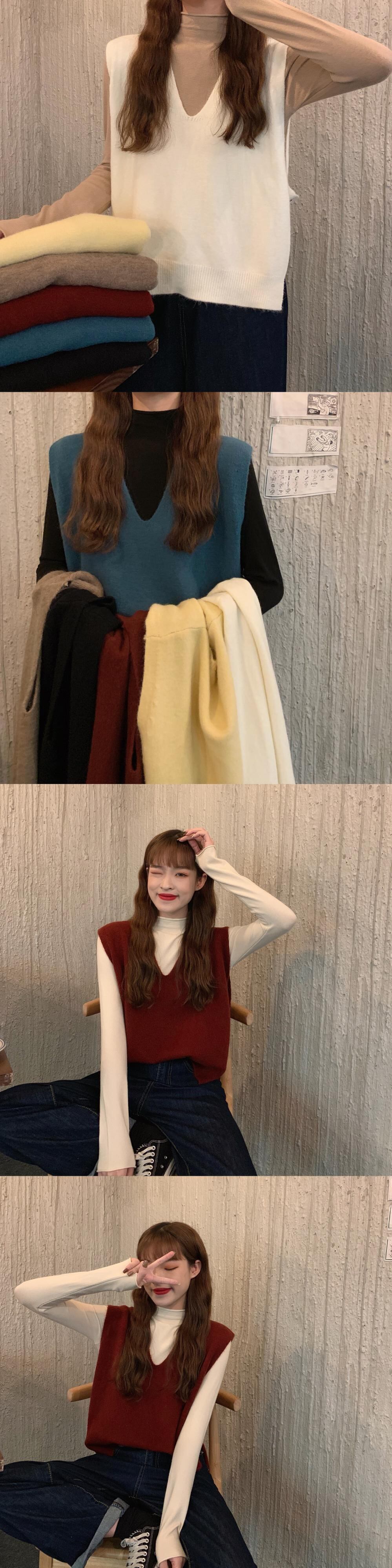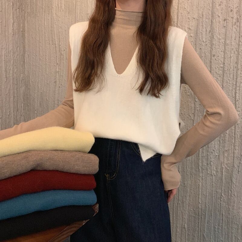秋物ウィンター韓国ファッションソリッド カラーVネックノースリーブニット オータム 冬物 ソリッドカラー スタイル ウエスト YY63263762242