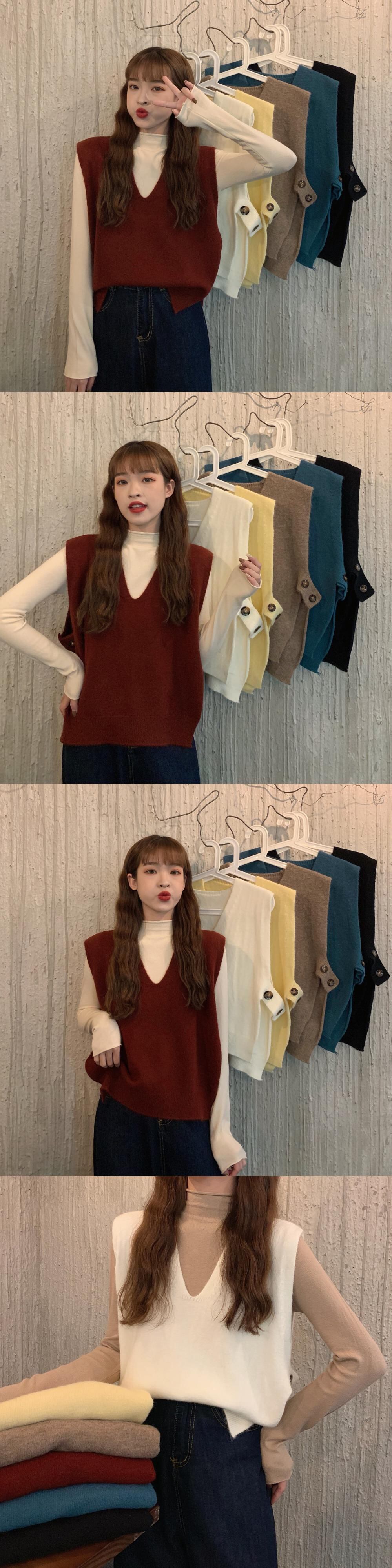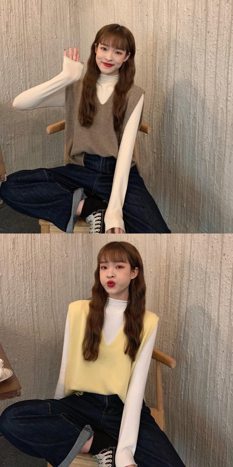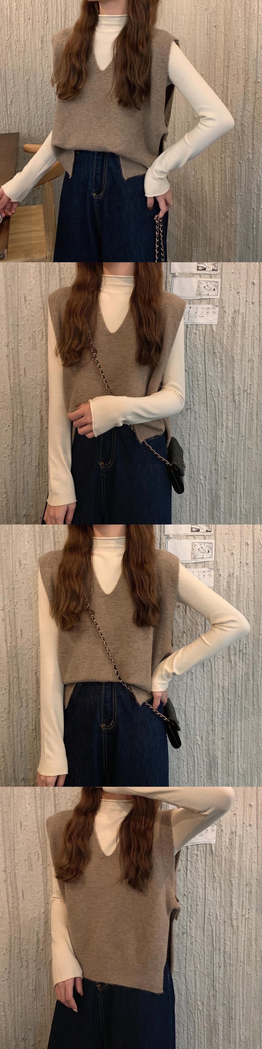 秋物ウィンター韓国ファッションソリッド カラーVネックノースリーブニット オータム 冬物 ソリッドカラー スタイル ウエスト YY63263762242