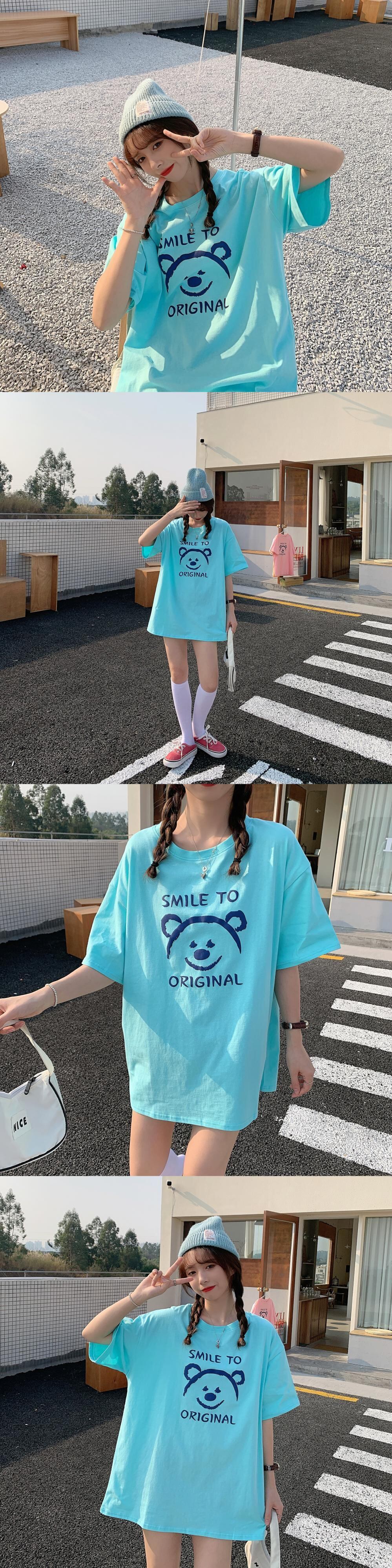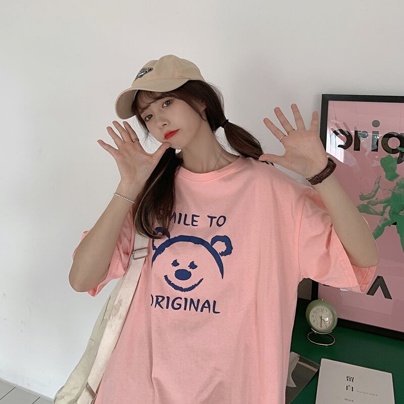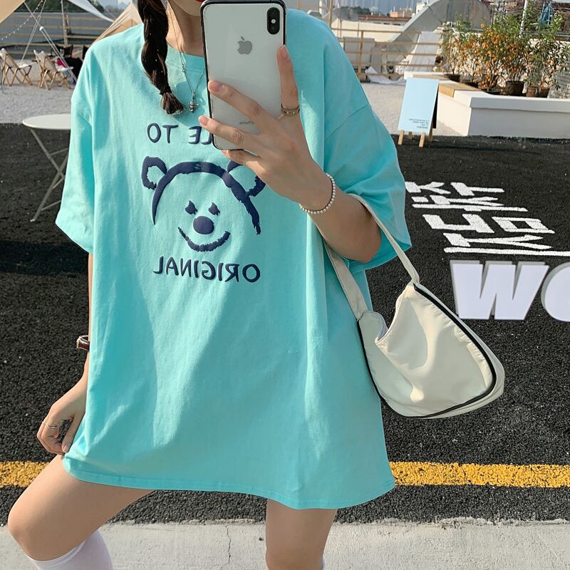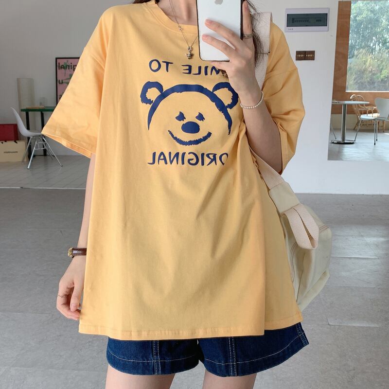 プリントTシャツレディース夏服韓国ファッションルーズトレンドラウンドネックトップス 夏物 Oネック ミドル丈 SPM24826793763