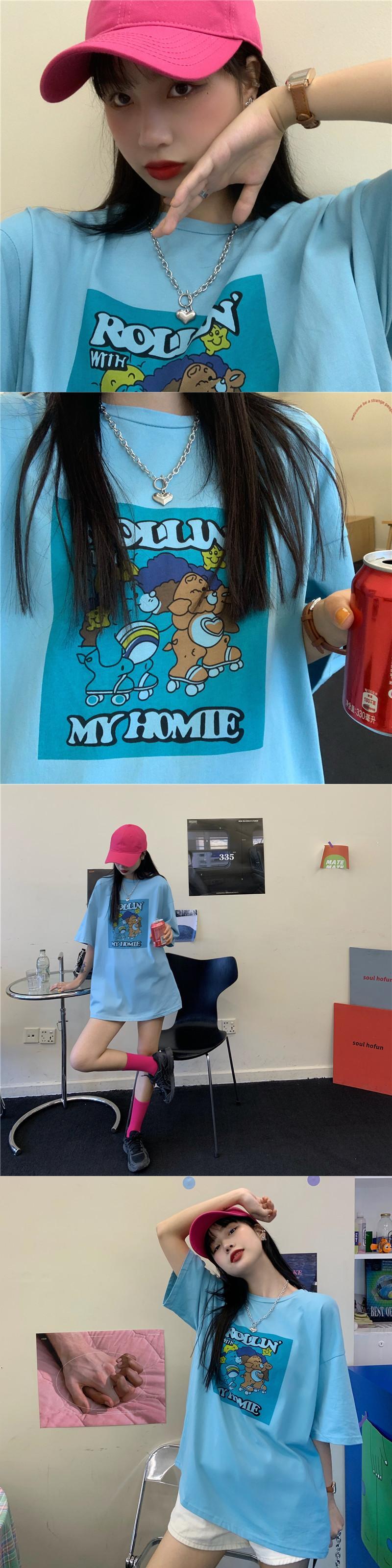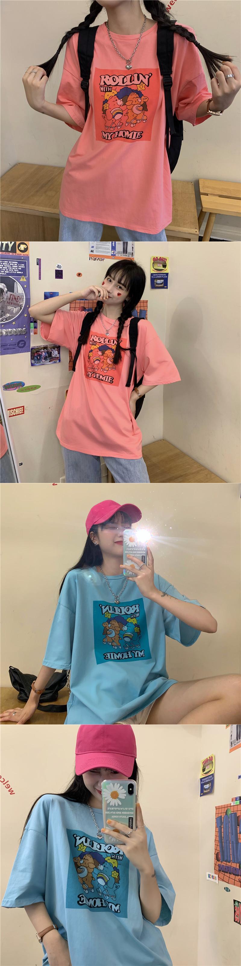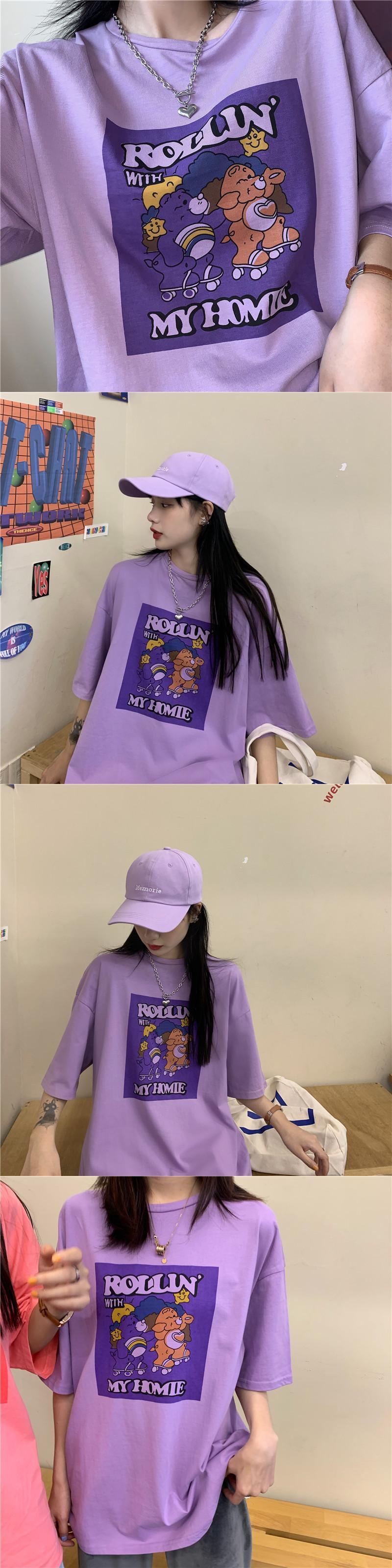 ルーズプリント柄Tシャツシャツ 夏服韓国ファッションゆったりトップス 夏物 スタイル SPM67511697354