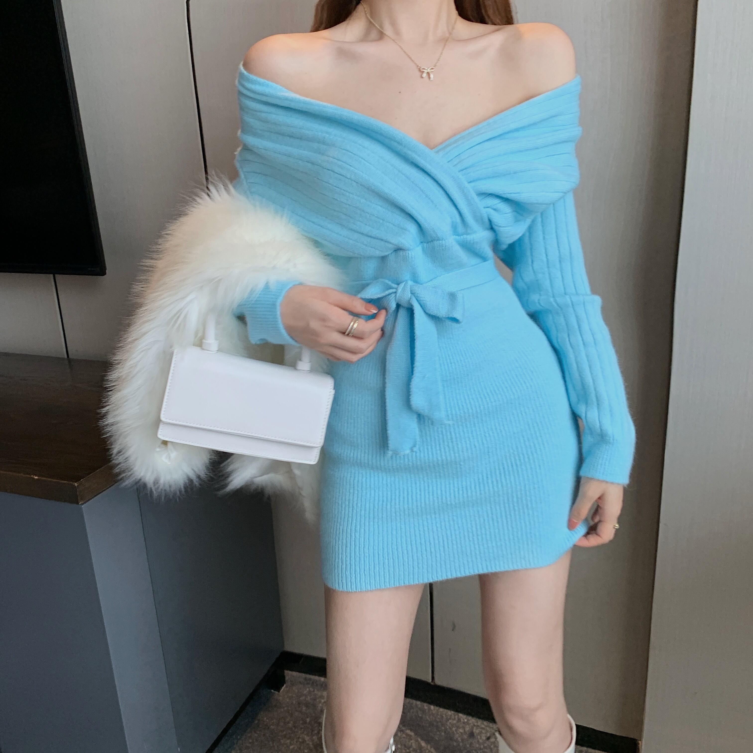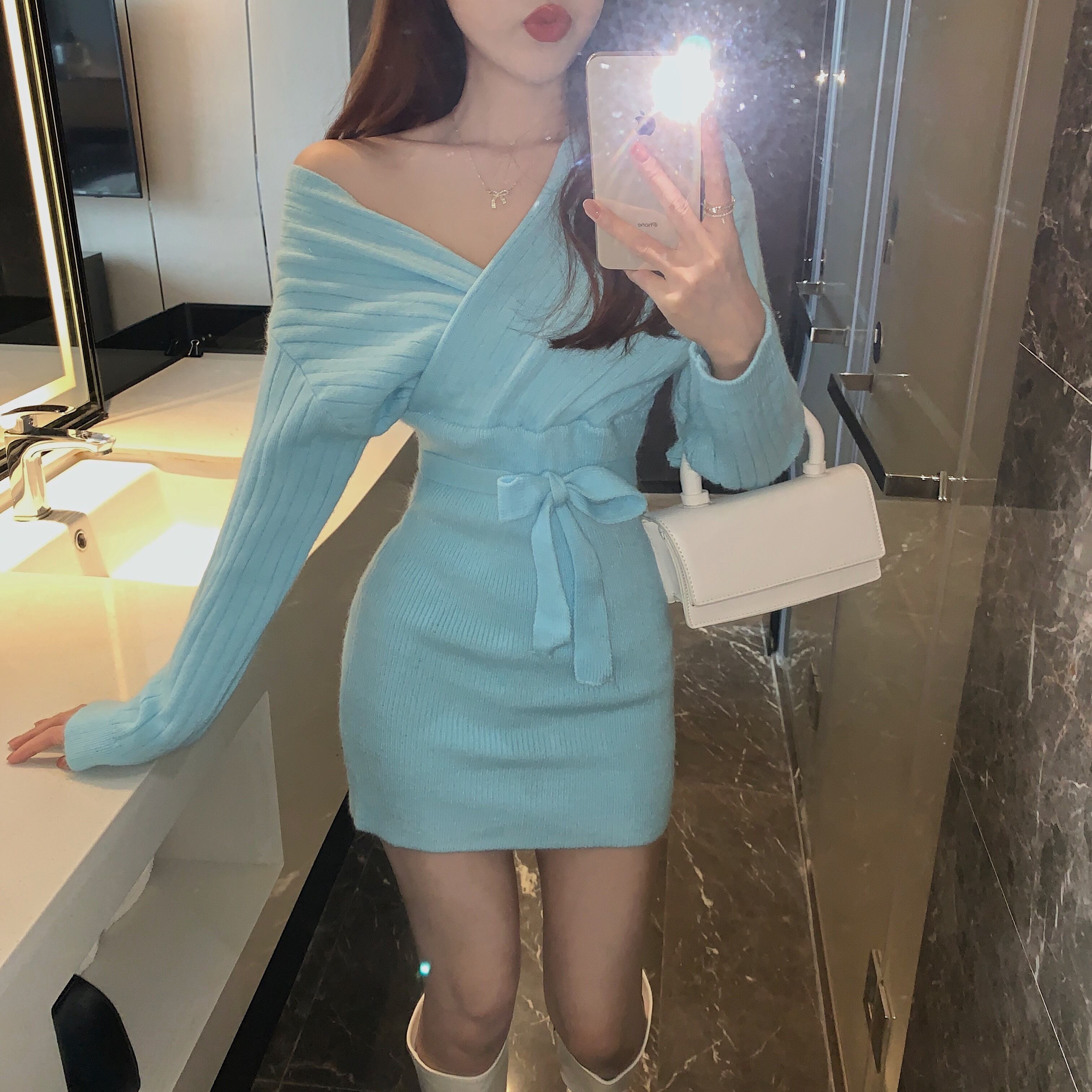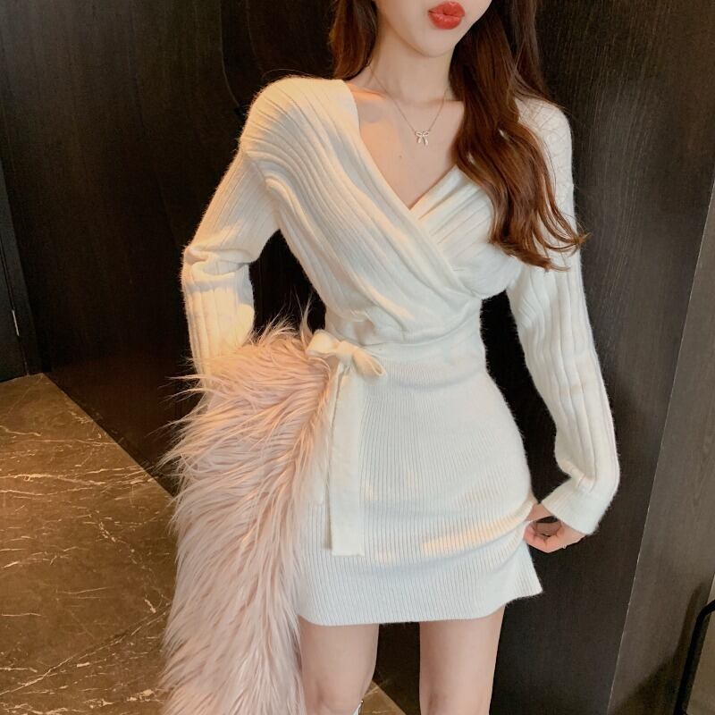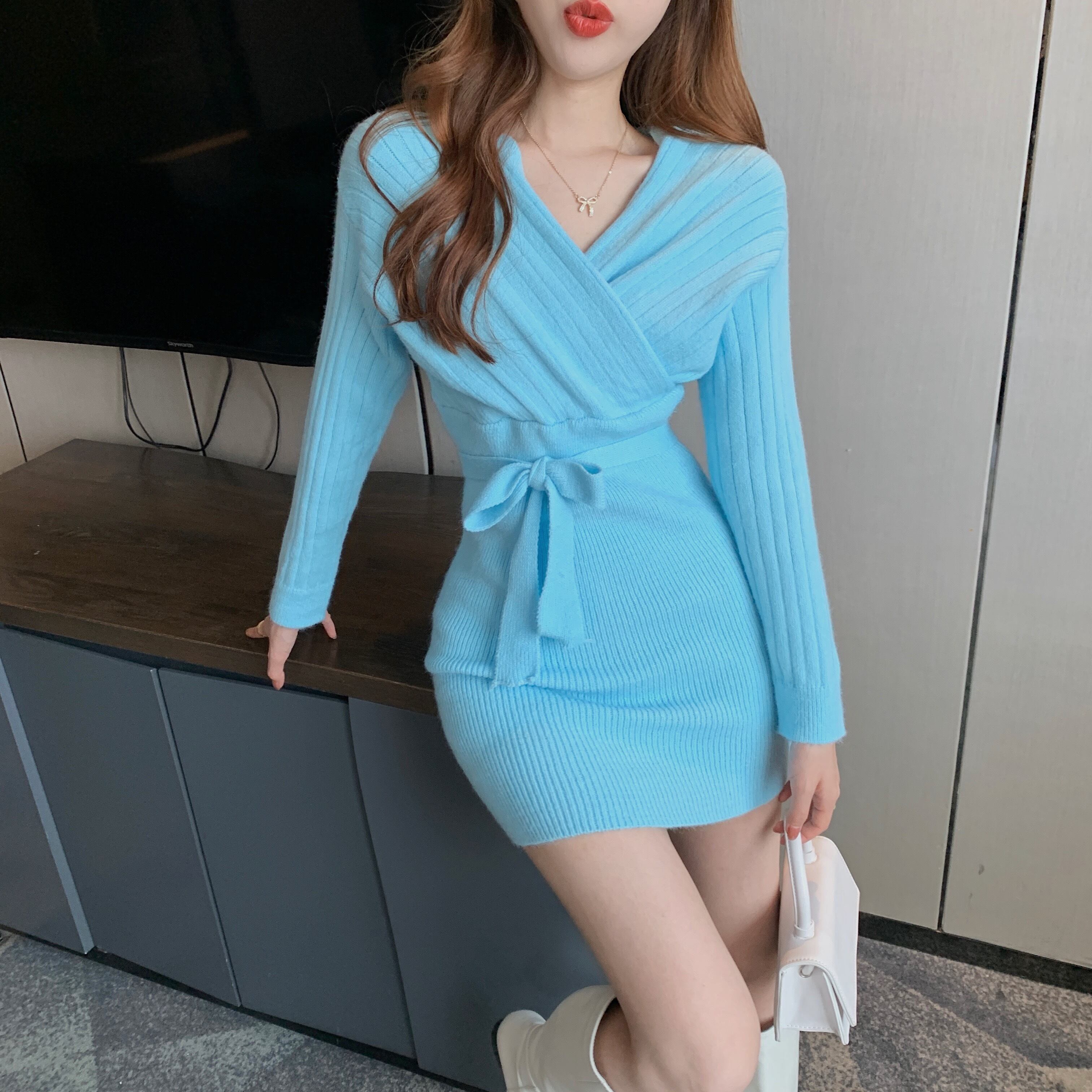 スプリングVネックニットセーター ワンピーススリムバンドスカート 春物 YY70492237230