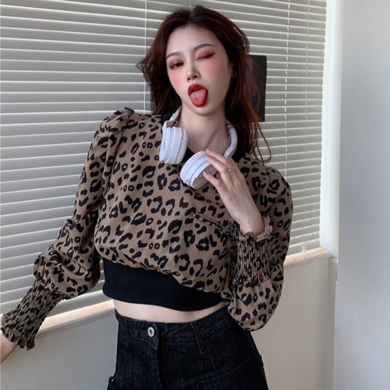 レオパードプリント柄セーター ジャケット スタンダードショート秋物ウィンタールーズ韓国ファッショントップス トレンド ロング レトロ オータム 冬物 長袖 YY78246817903