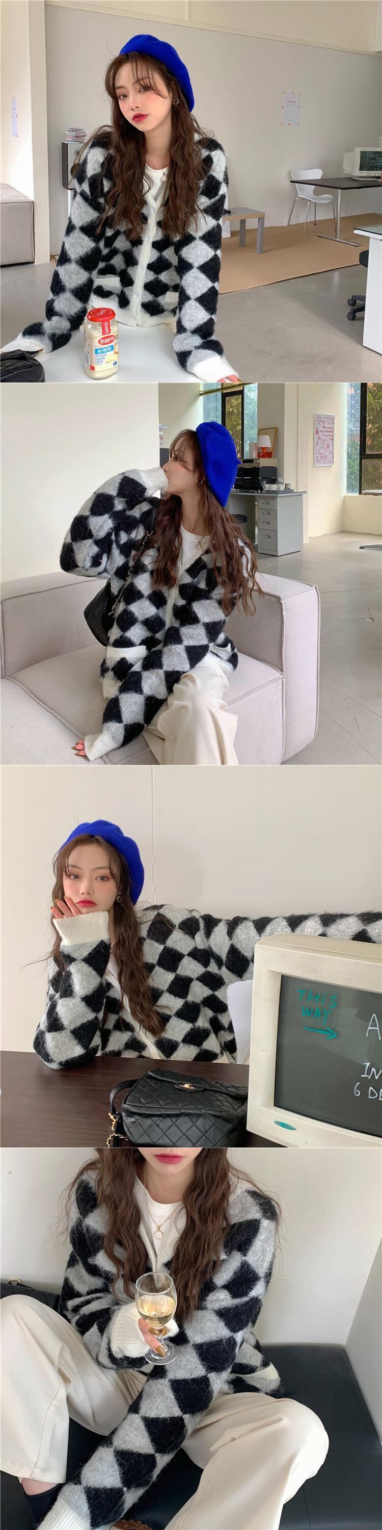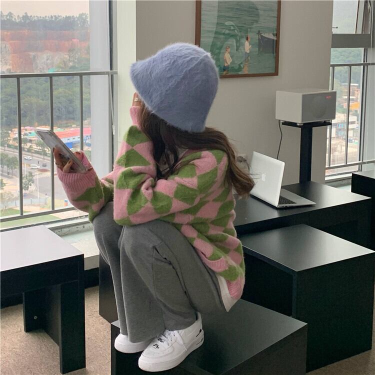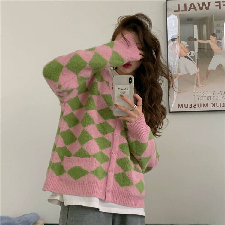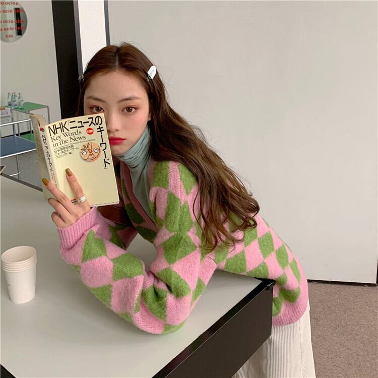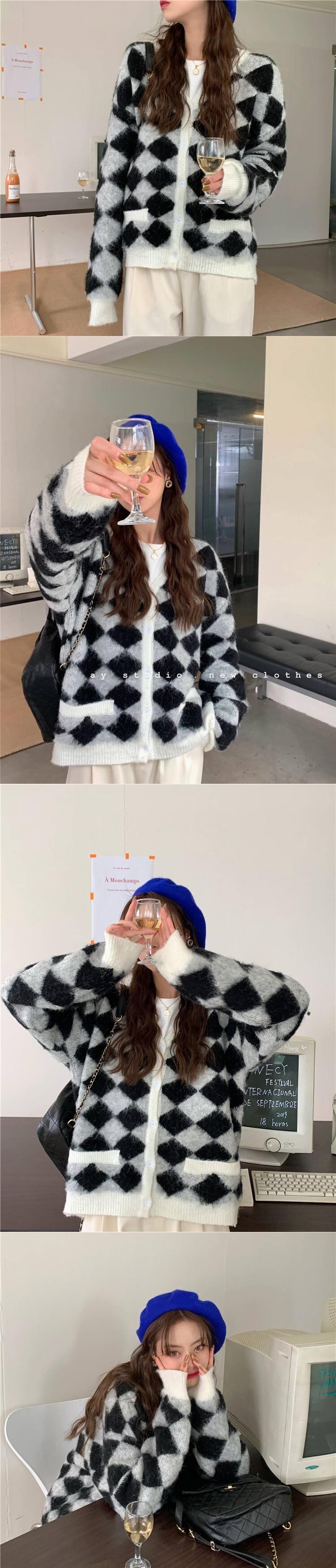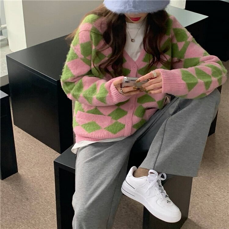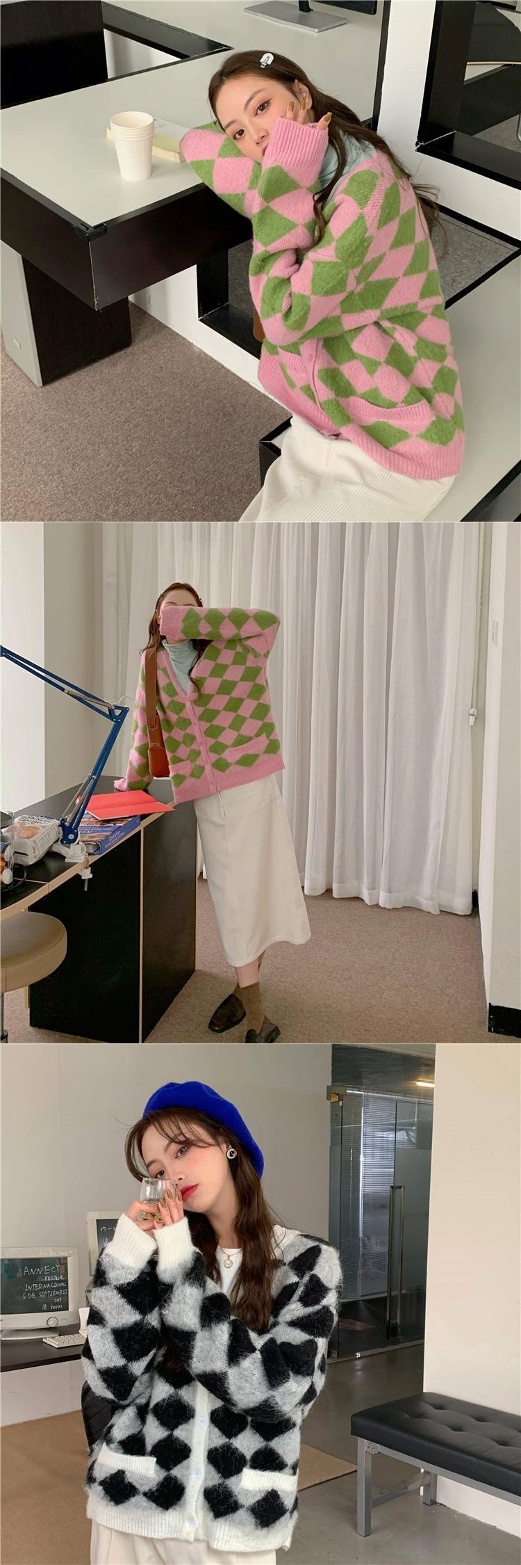 Vネックセーター レディース韓国ファッションルーズニットカーディガンスタンダードスタイルウィンターアウタージャケット レトロ 冬物 YY41300513498