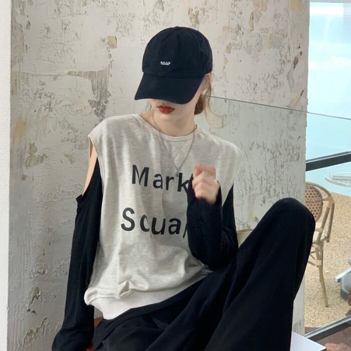 ノースリーブTシャツシャツ レディースルーズゆったりスプリングカジュアルトップス トレンド 春物 MONROE75640182215