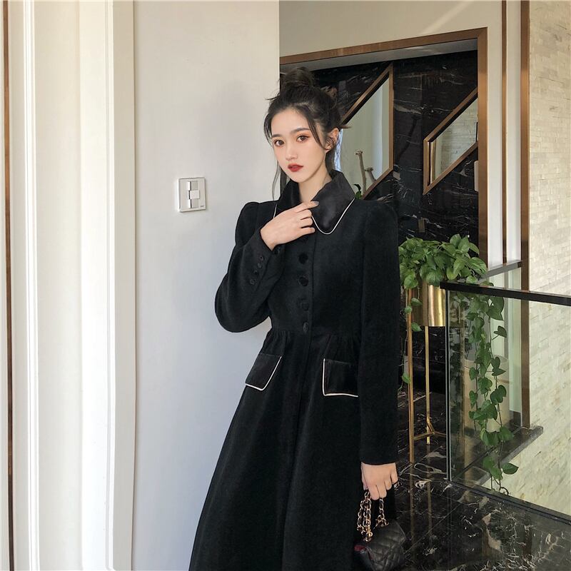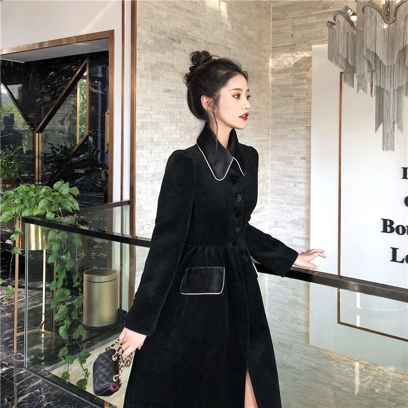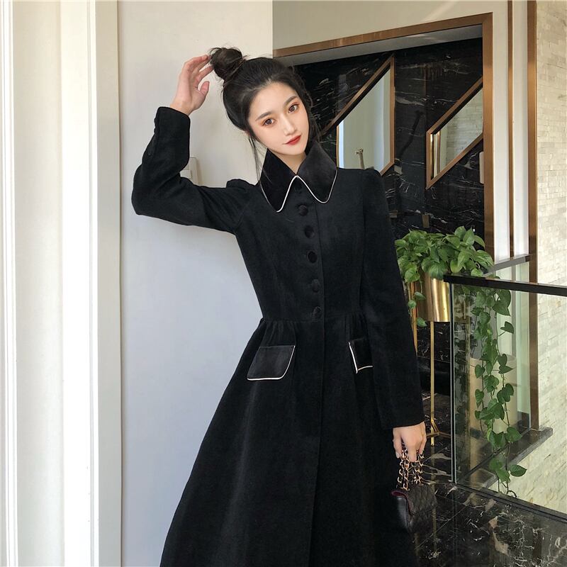 コート レディース韓国ファッションウィンタースタンダードブラック レトロ 冬物 ミドル丈 YY46026658959