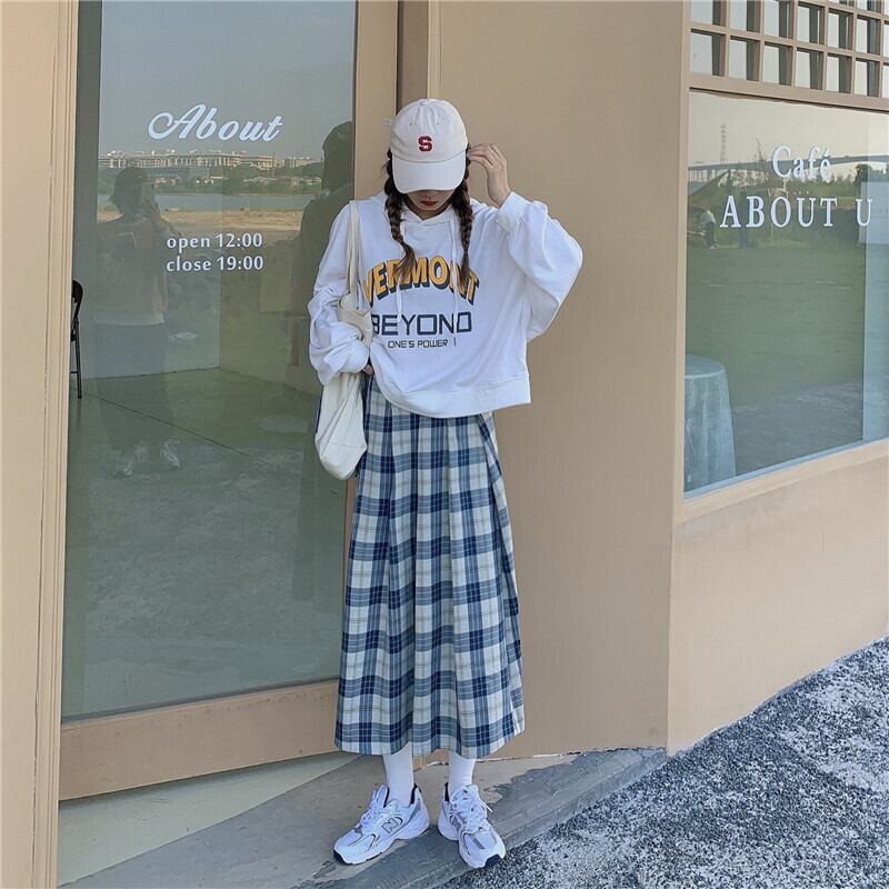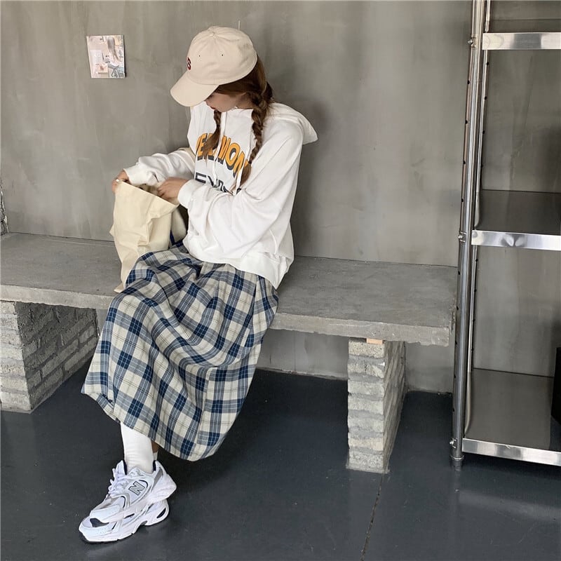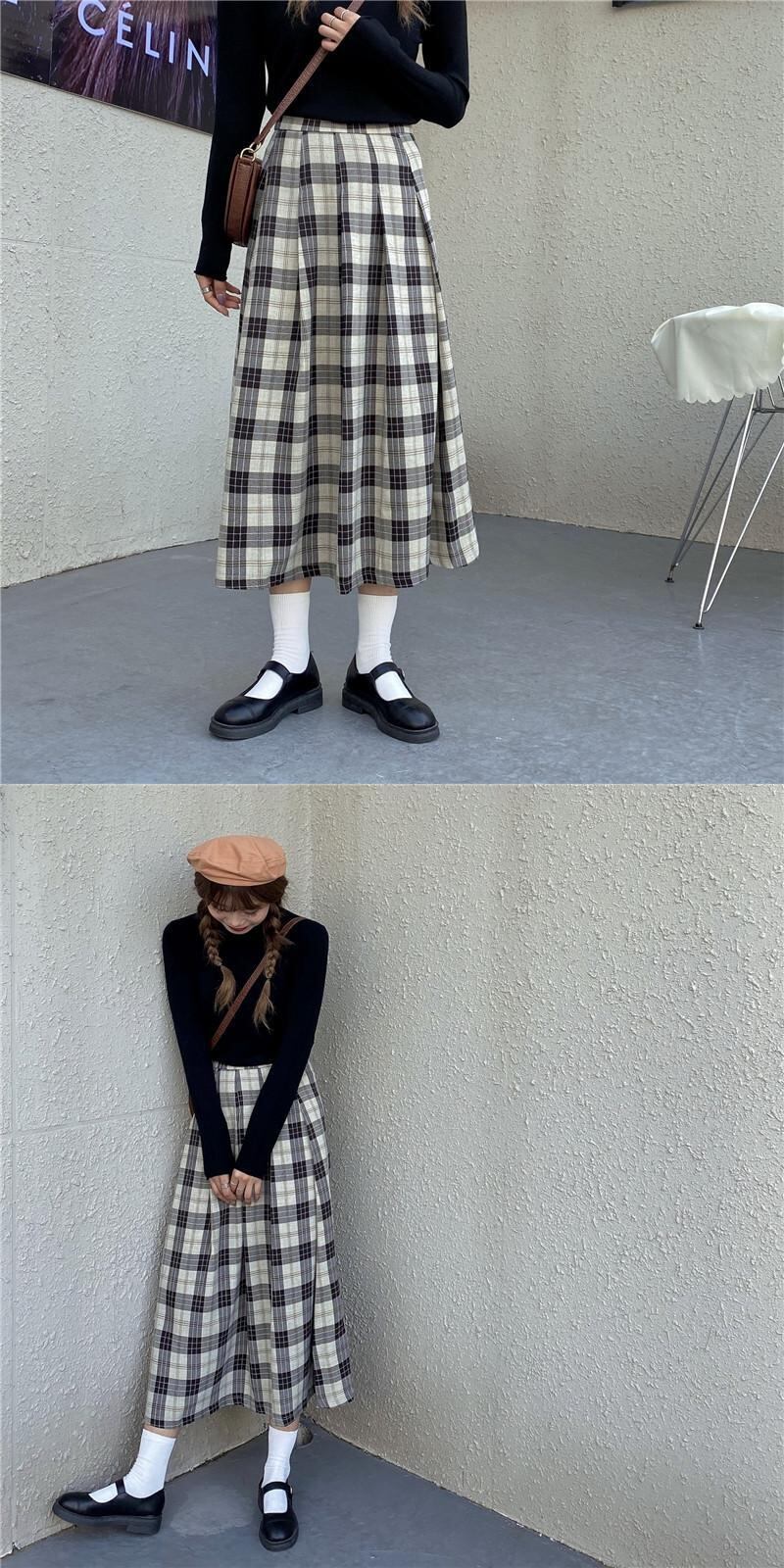 スタンダードハイウェストウェストスリム格子柄スカート レディース秋物ウィンターAラインプリーツ レトロ オータム 冬物 ウエスト ミドル丈 YY64398110702