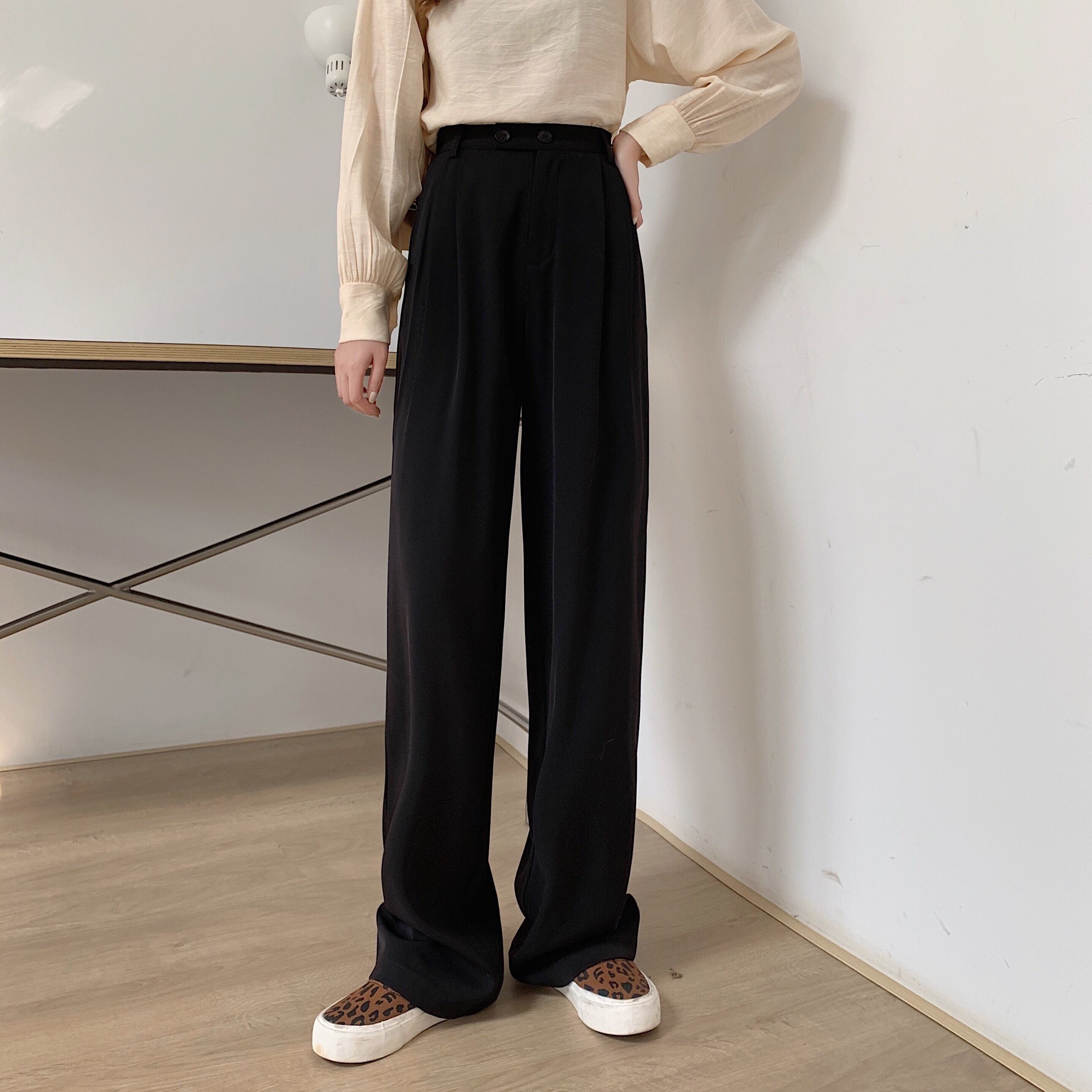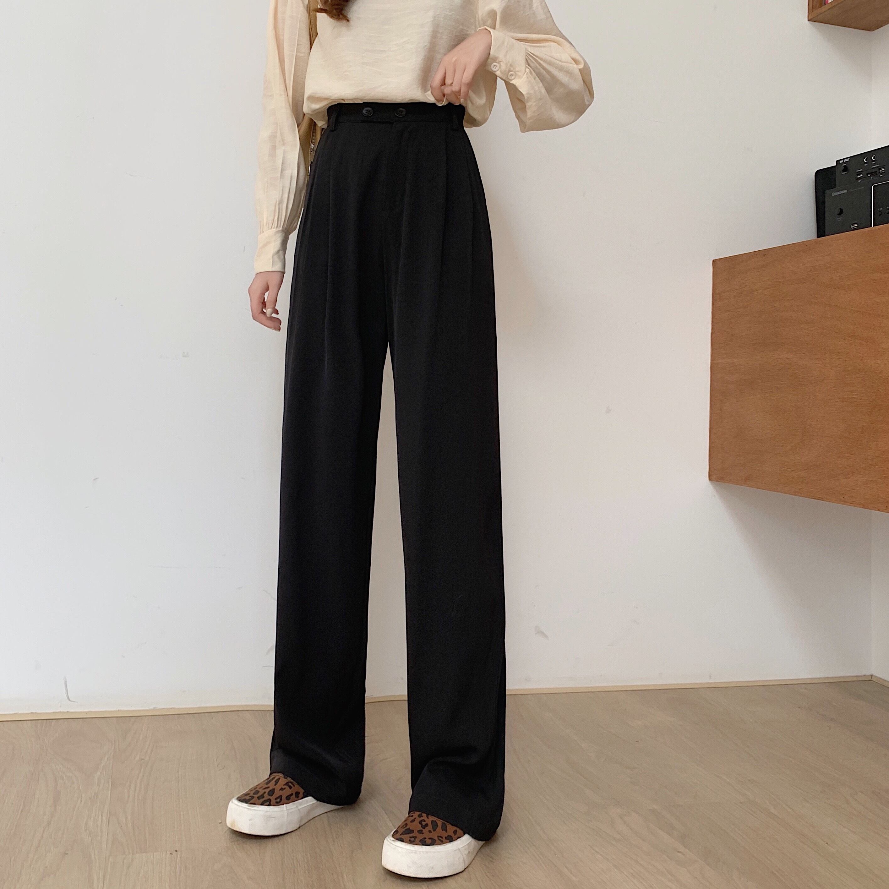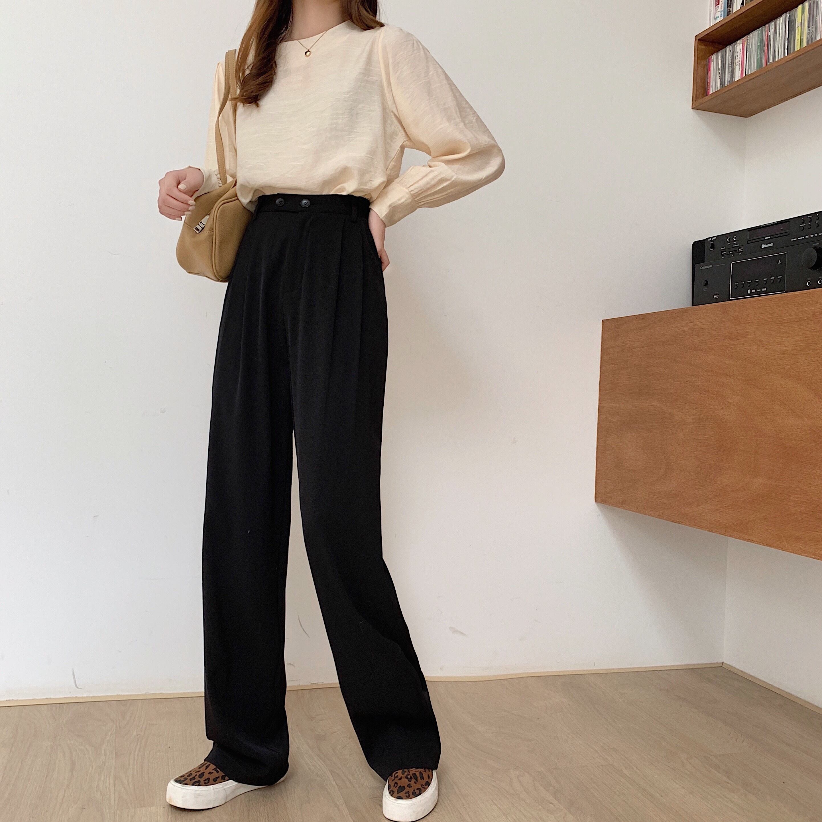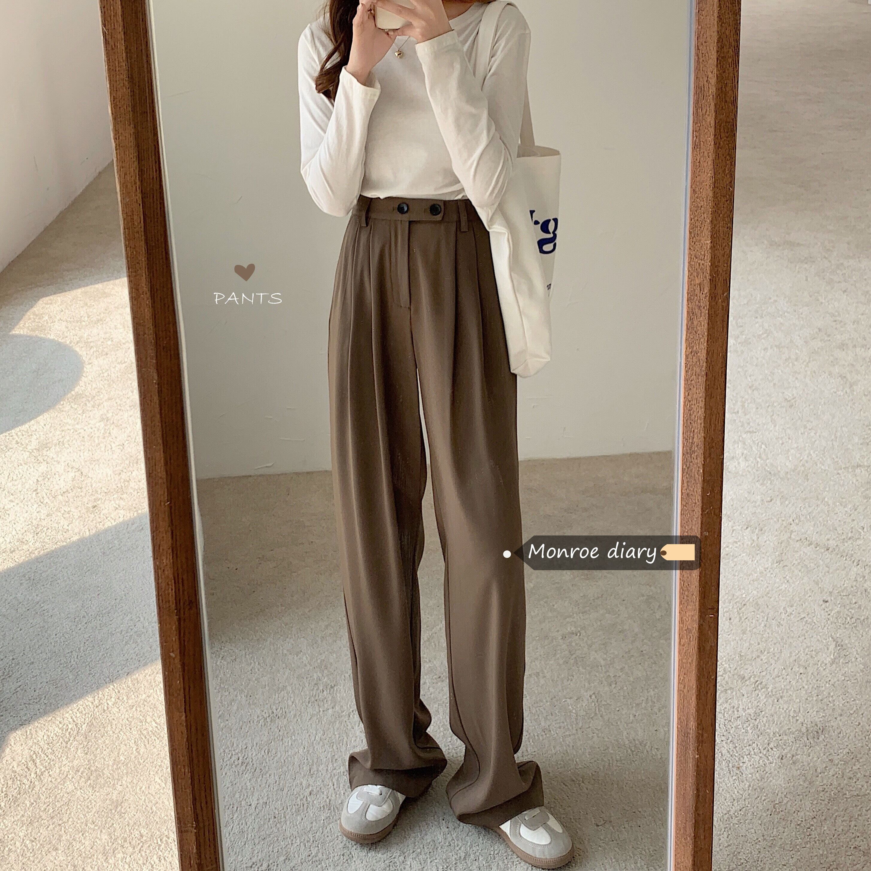パンツ ハイウェストウェストスリムスプリング秋物ルーズワイドレッグ 春物 オータム ワイドパンツ ウエスト MONROE16290036110