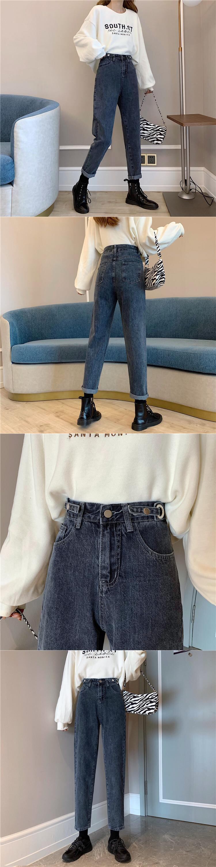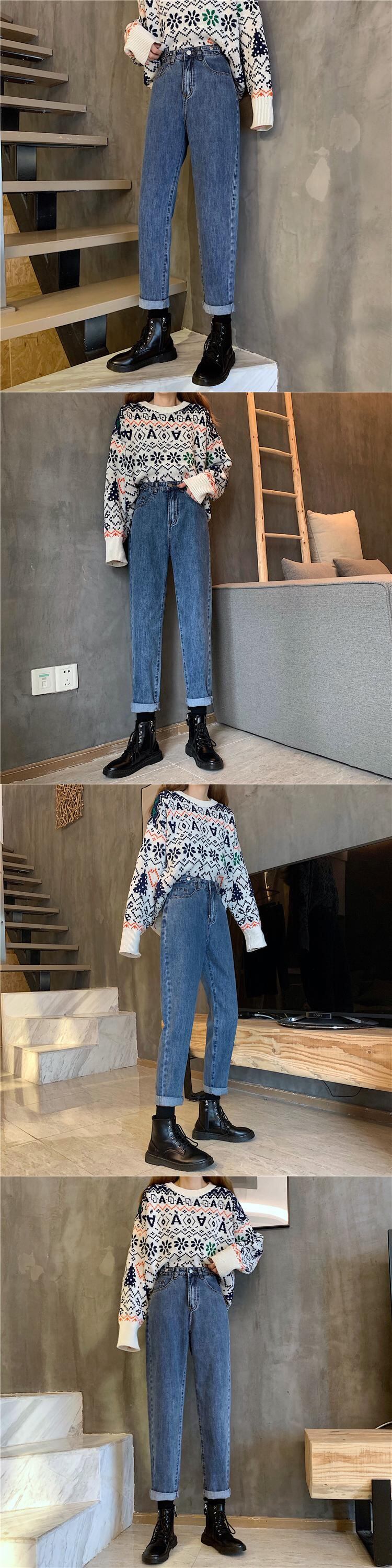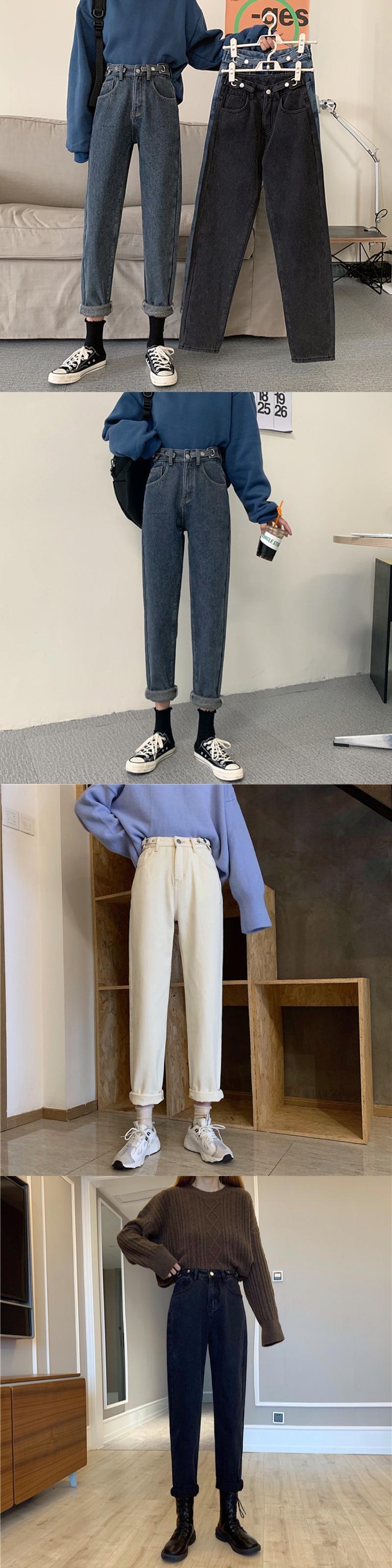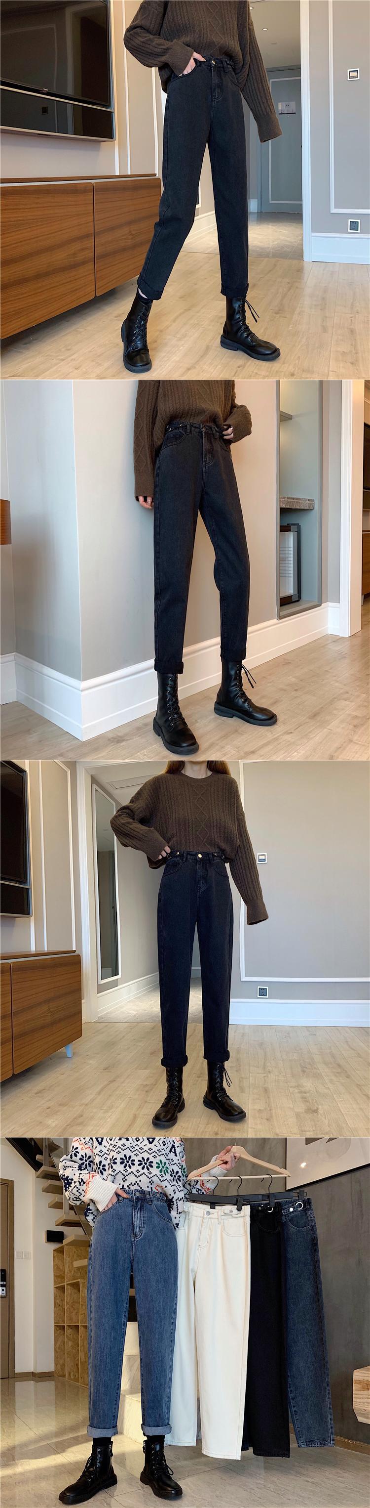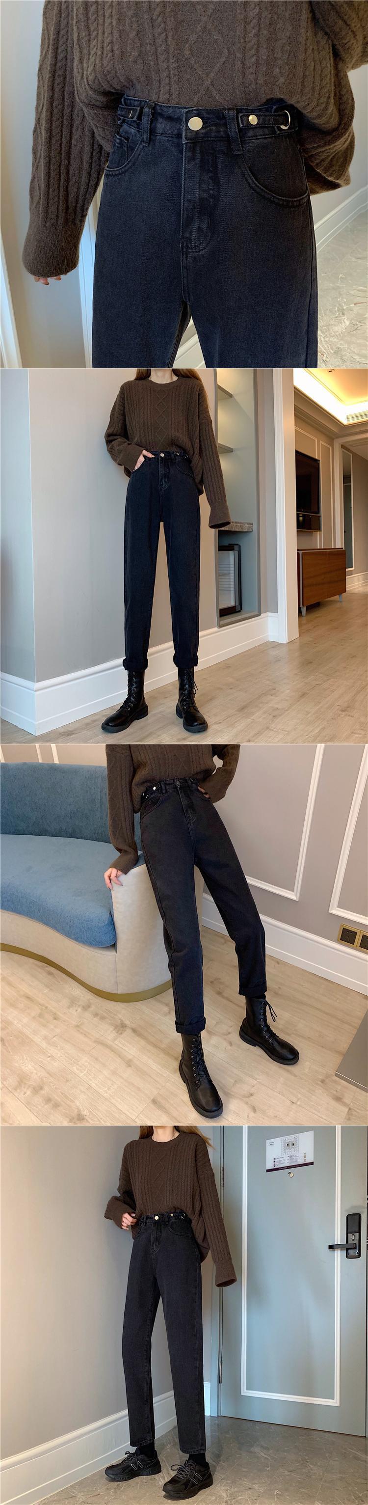 秋物ウィンターハイウェストルーズスリムパンツ 厚みジーンズ オータム 冬物 ウエスト YY81811602954