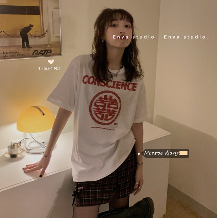 Tシャツシャツ レディース韓国ファッションルーズトップス 夏服トレンドホワイトゆったり コットン 夏物 MONROE46977662942