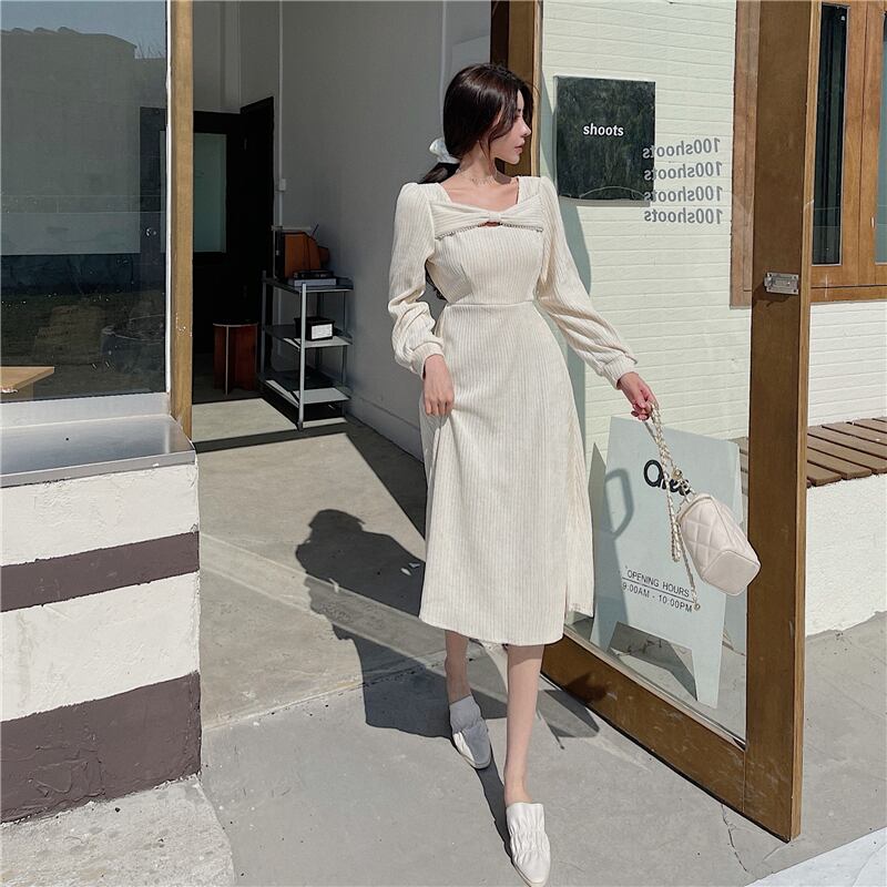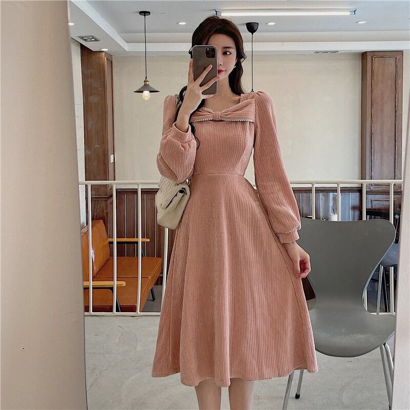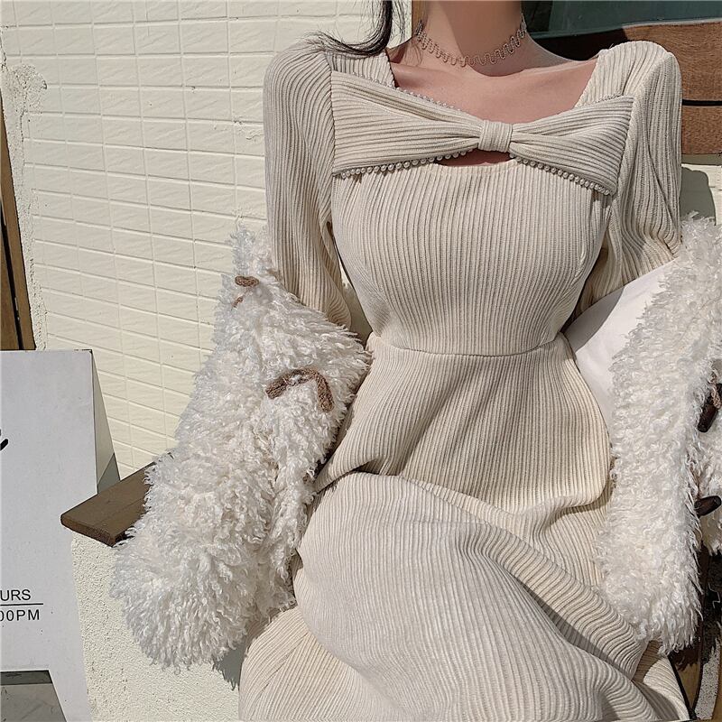 ニットセーター ワンピースリボンスカート スプリングレディース ロング 春物 長袖 ミドル丈 YY80707329222