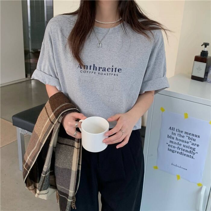 グレーTシャツシャツ 夏服トレンドゆったりルーズ韓国ファッションカジュアルトップス 夏物 MONROE30142135629